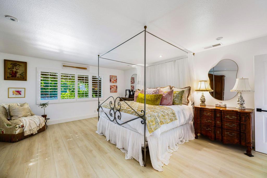 Set on one of only twelve expanded parcels within the sought-after enclave of South Palm Desert, this Spanish Ranch Estate offers a rare blend of privacy, comfort, and timeless appeal. Spanning approximately 0.77 acres, the beautifully landscaped grounds showcase mature trees, lush greenery, a custom putting and chipping course, and enchanting English gardens that define the soul of the property. Beyond the private gates, a sense of calm immediately sets in, creating a true retreat from the outside world. The residence is warm and inviting, featuring new wood flooring throughout and a character that reflects decades of thoughtful ownership by the same family for over forty years. Designed for seamless indoor-outdoor living, the main living spaces open through expansive glass sliders to a covered veranda complete with built-in heaters, a fireplace, and media cabinet--ideal for entertaining or relaxed evenings year-round. The kitchen serves as the heart of the home, offering generous island seating, a pop-up television behind the sink, and an adjoining casual sitting area perfect for everyday gatherings. The formal dining room creates a welcoming yet elevated space for both intimate dinners and larger celebrations The primary suite is a private retreat with serene views of the pool and grounds, two dedicated offices, and a cozy fireplace. The newly renovated, spa-inspired bath features a soaking tub, dual walk-in closets, and dual water closets. Additional highlights include the custom-built office with private patio access, two guest suites, a media room, and a powder room. The guest house offers exceptional flexibility with two bedrooms, two bathrooms, a living room, dining area, kitchenette, and its own expansive private patio--ideal for extended stays or visiting family and friends. Deep Canyon Ranch is a place where comfort, privacy, and everyday luxury come together effortlessly. We look forward to welcoming you to this special estate.