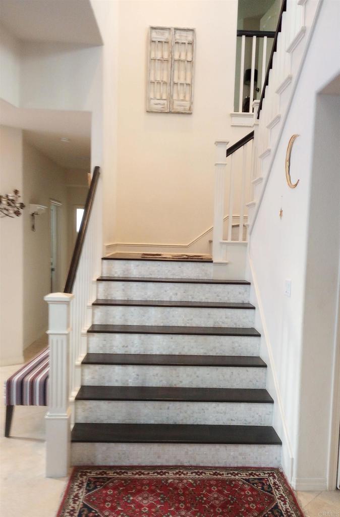 Beautiful Bordeaux home within the Pacific Highlands Ranch neighborhood in Carmel Valley in super quiet location. Great floorplan with spacious dining room, separate family and living room, bedroom on main level, wide staircase and loft/office overlooking lower level. One of the best values in Carmel Valley. Abundant natural light, architectural details such as arched doorways and Spanish style exterior features including awning and tower entry make this property stand out. Interior highlights include stairs with hand scraped espresso engineered wood floor and mother of pearl mosaic riser, travertine tile on lower level, vinyl planks on upper level, stainless steel appliances incl. brand new, never used double wall oven with air fry function, stained-glass window in living room, low VOC paint, Caesarstone countertop in primary bathroom and additional exterior lighting. This home features 4 BDR, 3 BA plus loft/office and a 3-car tandem garage/workshop. Recent upgrades include exterior painting in June of 2025. Large lot with multiple seating areas including side yard with gate which can be used as dog run or play area. Multi-purpose outdoor spaces, pre-plumbed with 50-amp outlet for spa. Mature plants, fruit trees and water wise landscaping. Access to the West Highlands Pacific recreation center with wonderful amenities such as pool, spa, clubhouse, gym, outdoor seating and barbeque areas. Lowest HOA dues in all of Pacific Highlands Ranch! Convenient shopping nearby and close to top-rated schools, all in walking distance. Short drive to the beach.