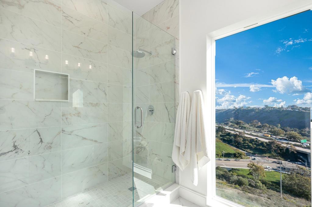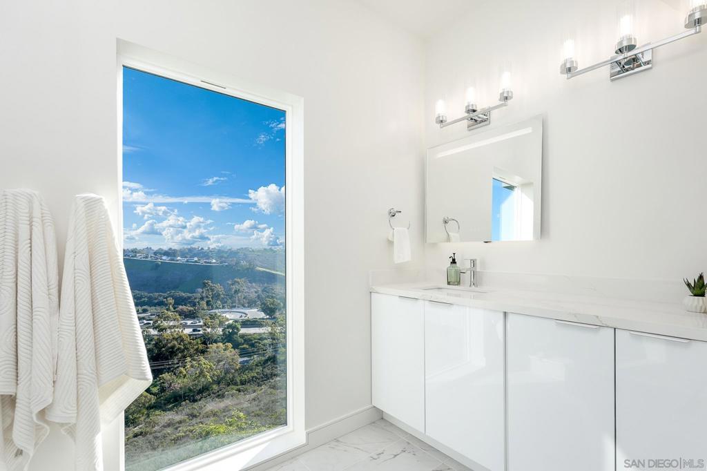 A dramatic re-imagining of California coastal living — this sleek, modern estate perched in North La Jolla delivers sweeping eastern and city-skyline views from multiple vantage points. Vaulted ceilings and skylights flood the interior with natural light, while large windows frame horizon views that shift from sunrise warmth to shimmering nighttime cityscapes. Three expansive view decks, along with generously proportioned living areas anchored by a dramatic, elongated fireplace, create a home that balances grandeur with comfort. The chef’s kitchen opens seamlessly to the great room with stone countertops and high-end finishes, ideal for both casual family meals and entertaining. Hardwood floors and cathedral ceilings throughout the home create a flowing, elegant atmosphere. With three fireplaces, split-level zones for climate control, two water-heaters, and a 3-car garage — the home was rebuilt with no expense spared. This is more than a home; it’s a rare opportunity to own a fully renovated, view-driven estate that pairs modern luxury with the signature La Jolla lifestyle.