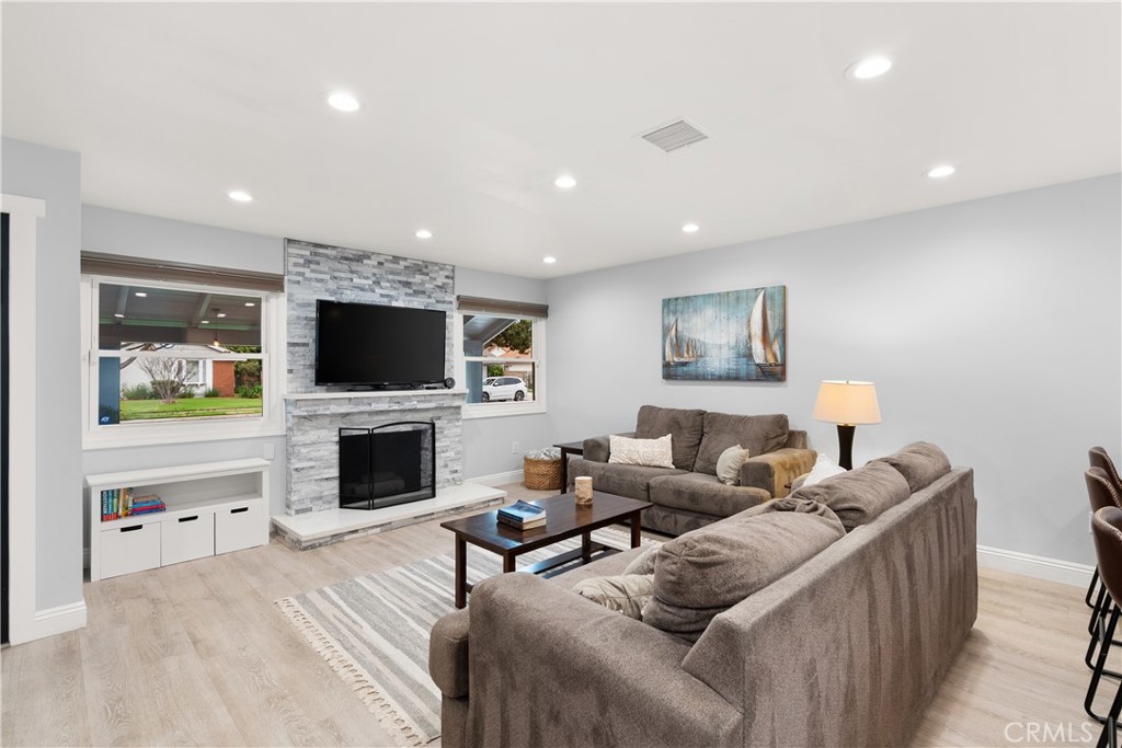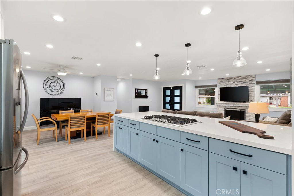 Throw away your checklist, because this home has it all. This beautifully remodeled, single-level home offers four true primary bedrooms, each with its own fully remodeled en-suite bathroom, making it ideal for family living, hosting guests, or accommodating multigenerational needs. Every bedroom has its own bath, adding both comfort and privacy. The great room welcomes you with a striking stone fireplace and picture windows that overlook the front yard and fill the space with natural light. An elegant breakfast bar flows seamlessly into the dining area, creating the perfect setting for everyday meals and memorable gatherings. The chef’s kitchen blends function and style with generous quartz countertops, crisp white shaker cabinetry, a gas cooktop, stainless steel appliances, and a window overlooking the backyard, perfect for keeping an eye on kids or guests outside. Luxury vinyl flooring runs throughout the home, delivering a clean, modern look with durability for daily living. A dedicated indoor laundry room offers extra storage and a convenient folding station. The oversized two-car garage provides ample space for vehicles, sports equipment, bikes, or camping gear. Central air conditioning and PAID for solar keeps you cool all year. Outside, the wrap-around yard is built for entertaining and features an outdoor kitchen with two BBQs, a cooktop, granite countertops, and seating for friends and family. Just down the street, a neighborhood park completes the picture, offering a great place to meet neighbors, enjoy weekend playtime, or take evening walks. This home offers more than just a place to live; it delivers a lifestyle you will want to experience in person.