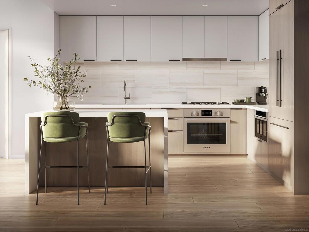 Welcome to Andia by Bosa Development. Now selling and already under construction with an anticipated completion date of fall 2027, Andia is the first new Downtown San Diego condominium high-rise in nearly 8 years. Featuring resort-like amenities and sophisticated interior design, the residences at Andia offer a seamless blend of style and comfort with the city as your backdrop. Residence 1906 is a east-facing 2 bedroom plus den boasting a split bedroom layout, each with a walk-in closet, integrated Bosch kitchen appliances with Zephyr hood, kitchen island with waterfall edge, polished chrome Kohler fixtures, Caesarstone quartz countertops with polished tile backsplash, primary bathroom with dual vanity sinks, and glass enclosed shower, front-loading full-size washer and dryer along with a spacious balcony featuring spectacular city & mountain views. Andia by Bosa Development brings new heights to Downtown San Diego. Featuring modern design and resort-styled amenities, Andia soars 40 stories above the center of the city, showcasing 399 thoughtfully appointed 1- to 3-bedroom residences ranging in size from ~620 to ~1,729 square feet with two contemporary finish palettes. This is not an offer to sell but intended for information only. The developer reserves the right to make modification in materials, specifications, plans, pricing, designs, scheduling and delivery without prior notice. Renderings, photography, illustrations and other information described herein are representative only and are not intended to reflect any specific feature or view when built. No representation and warranties are made with regard to the accuracy, completeness or suitability of the information published herein.