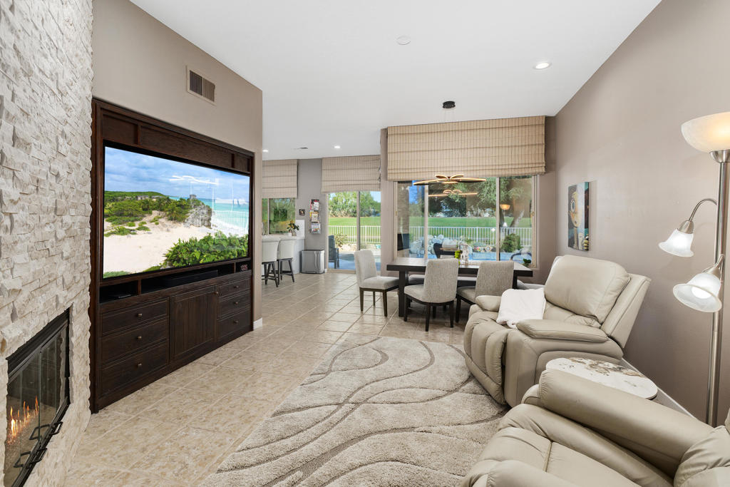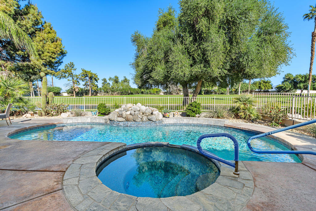 This beautiful remodeled single-story move-in ready 2600 sq ft home offers spacious living featuring 2 Bedrooms, 3 full baths and is set up with an open office/den with elegant built-ins. The quest bedroom with it's own outside private entry also has access directly from the home. This bedroom/casita has it's own full bath and walk-in closet. The third full hallway bathroom suffices as a guest bathroom. The home has stunning fairway, mountain, lake and pool views! There are no attached walls, no stairs, and is the largest single-story floor plan in this community. As you enter the home through the double front doors you immediately notice the openness of this home with its tall ceilings, new tile flooring, and the focal point of the stunning split stone floor to ceiling double fireplace facing both the living room and family room... all of which adds to the light and bright atmosphere of this gorgeous home. The chef's kitchen with quartz countertops includes a center island offering casual seating. From the kitchen you can exit the sliding glass doors to the inviting private back yard patio with professional desert landscaping, pool/spa with new pebble-tec finish and rock waterfall, built-in BBQ, and a automated awning for additional shade. The enormous Master Suite w/fairway and pool views has a massive walk-in closet with built-ins, custom cabinets with loads of storage, dual sinks, a large tub with a separate shower. This home also has it's own separate laundry area with a sink and storage. Additional highlights include an attached 2-car garage plus a 3rd garage for a golf cart. This golf community also offers a 10-hole golf course at a minimal annual cost! Rancho Mirage CC is ideally located in Rancho Mirage and is close to Eisenhower Medial Center, shopping, dining and entertainment, minutes to the The River, and of course the El Paseo Shopping and Dining District. This home has it all and can be either your perfect seasonal retreat or your full-time sanctuary. Don't miss out this one!