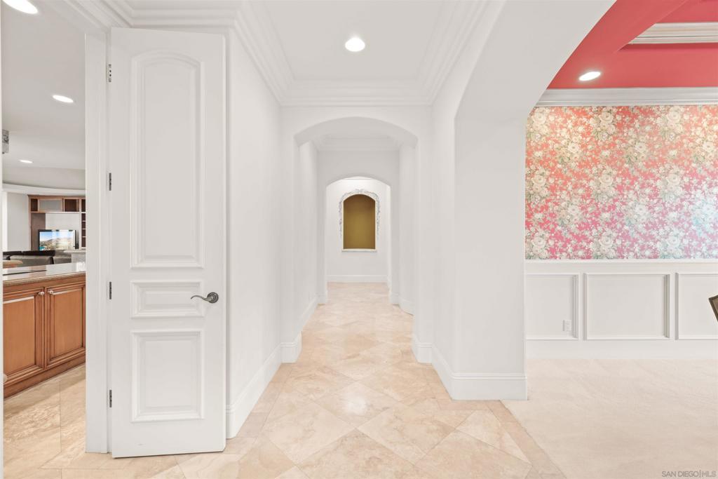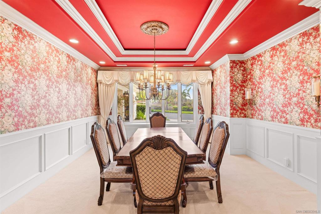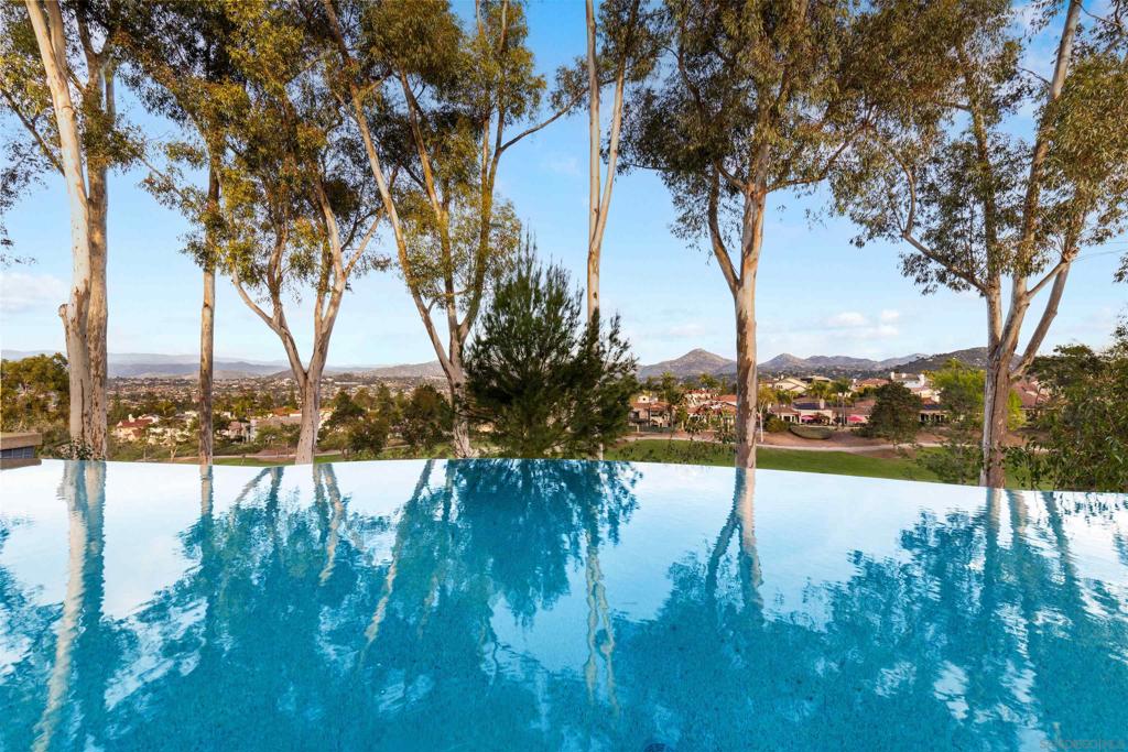 Nestled within an exclusive private gated cul-de-sac of only six custom estates, this exceptional Rancho Bernardo residence offers rare privacy, scale, and unobstructed panoramic golf course and mountain views. Spanning over 5,700 square feet, this custom-built estate is thoughtfully designed for both grand entertaining and comfortable everyday living. The home features 4 bedrooms and 3.5 bathrooms, including a main-level primary suite ideal for long-term comfort and accessibility. A dramatic grand entry with soaring ceilings and a striking circular staircase sets the tone for refined living. The gourmet kitchen is appointed with custom cabinetry and generous workspace, seamlessly connecting to expansive living and family rooms with built-ins. Additional highlights include a dedicated executive office on the first floor and a spacious upper-level loft/game room, offering flexibility for work, recreation, or multigenerational living. Significant recent upgrades include new roof tiles (2023), a new water heater (2023), and a fully owned 71-panel solar system (2023), providing energy efficiency without compromising luxury. The resort-style backyard is a true retreat, featuring a custom infinity-edge PebbleTec pool positioned to capture breathtaking golf course and mountain views, ideal for relaxing or entertaining. Rarely does a property of this size, privacy, and view orientation become available in such an intimate gated enclave. A unique opportunity to own a timeless estate in one of Rancho Bernardos most coveted locations. Nestled within an exclusive private gated cul-de-sac of only six custom estates, this exceptional Rancho Bernardo residence offers rare privacy, scale, and unobstructed panoramic golf course and mountain views. Spanning over 5,700 square feet, this custom-built estate is thoughtfully designed for both grand entertaining and comfortable everyday living. The home features 4 bedrooms and 3.5 bathrooms, including a main-level primary suite ideal for long-term comfort and accessibility. A dramatic grand entry with soaring ceilings and a striking circular staircase sets the tone for refined living. The gourmet kitchen is appointed with custom cabinetry and generous workspace, seamlessly connecting to expansive living and family rooms with built-ins. Additional highlights include a dedicated executive office on the first floor and a spacious upper-level loft/game room, offering flexibility for work, recreation, or multigenerational living. Significant recent upgrades include new roof tiles (2023), a new water heater (2023), and a fully owned 71-panel solar system (2023), providing energy efficiency without compromising luxury. The resort-style backyard is a true retreat, featuring a custom infinity-edge PebbleTec pool positioned to capture breathtaking golf course and mountain views, ideal for relaxing or entertaining. Rarely does a property of this size, privacy, and view orientation become available in such an intimate gated enclave. A unique opportunity to own a timeless estate in one of Rancho Bernardos most coveted locations.