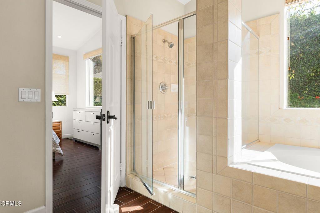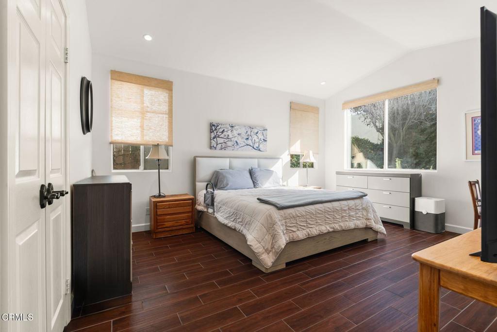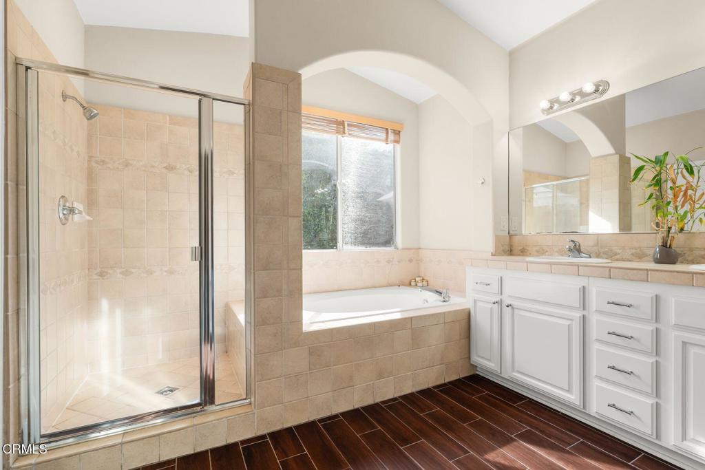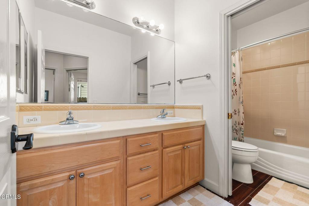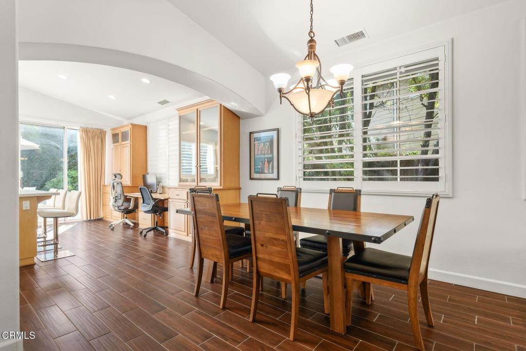 Welcome to this beautifully maintained 3-bedroom, 2-bath, single-story home offering comfort, style, and thoughtful upgrades throughout. The open living space features vaulted ceilings, a cozy fireplace, and wood-like tile flooring, complemented by recessed lighting and elegant plantation shutters that enhance both function and design. The kitchen is designed for everyday living and entertaining, showcasing quartz countertops, center island, double oven, ample cabinetry, and a convenient pantry. The spacious primary suite offers a relaxing retreat with double vanities, separate tub and shower and a generous walk-in closet. Step outside to a private, enclosed yard designed for both relaxation and entertainment, featuring stone and paver hardscaping surrounded by lush landscaping. Enjoy the benefits of paid-off solar, providing energy efficiency and long-term savings. Located within a vibrant community featuring a shared orchard with citrus and avocado trees, residents also enjoy access to a pool, playground, and BBQ area--ideal for weekend enjoyment. This inviting home blends modern upgrades, peaceful outdoor living, and exceptional community amenities, all on one easy-living level.