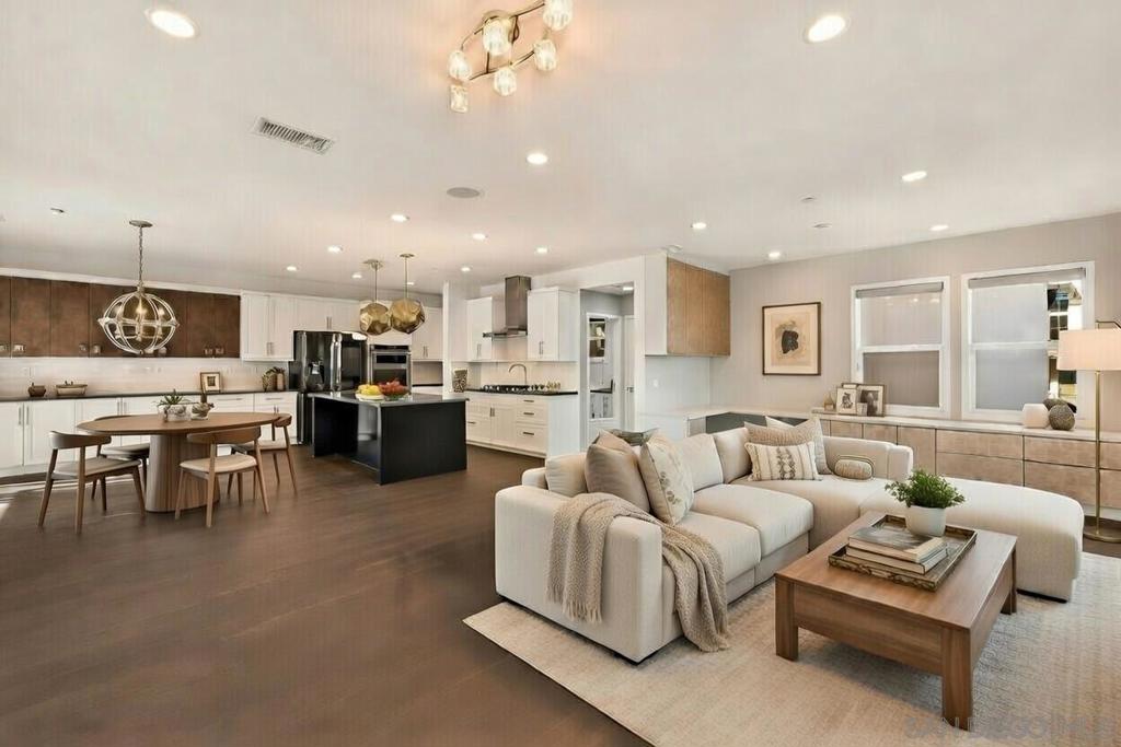 Welcome to this stunning detached single-family home on a prime corner lot at Apex, the pinnacle of Civita, offering expansive southern views over Mission Valley and a thoughtfully designed, multi-level floor plan filled with natural light. Upon entry, you are greeted by a unique split-level layout with stairs leading both up and down. The lower level features a versatile bonus room that can serve as an optional fourth bedroom, media room, or home office, along with a full bathroom, making it ideal for guests or flexible living arrangements. This level provides direct access to your private enclosed patio, a great space for outdoor entertaining! Also a conveniently attached two-car garage, and a driveway that allows parking for two additional vehicles, a rare and valuable luxury within the community. The main living level is designed for both everyday comfort and entertaining. A striking modern kitchen anchors the space, complete with top-of-the-line appliances, a smart refrigerator, custom leather cabinetry, and designer kitchen and dining room pendants that are sure to impress. The kitchen opens seamlessly to a spacious living room, alongside an open and airy study area. Step outside to the balcony to enjoy unobstructed palm tree views and Southern California sunshine. A convenient half bath completes this level. The home is thoughtfully appointed with a smart intercom system, a built-in soft-water system and subtle chandelier accents that complement the modern interior. The upper level offers a private retreat with all three bedrooms thoughtfully positioned for comfort and privacy. The primary suite features a pristine, modern bathroom showcasing a soaking tub set within a generously sized shower, dual vanities, and a large walk-in closet. Two additional bedrooms are located on this level, along with a detached full bath and a dedicated laundry room. Located within the award-winning Civita community, residents enjoy access to resort-style amenities including multiple pools, a state-of-the-art fitness center, parks, walking trails, a dog park, and breathtaking hillside and valley views. Civita is known for its modern architecture, vibrant atmosphere, and thoughtfully planned outdoor spaces that encourage both relaxation and community. Perfectly positioned in Mission Valley, this home offers one of San Diego’s most central locations with easy access to the 8, 163, 805, 15, and 5 freeways. Shopping, dining, and everyday conveniences are just minutes away, including Costco, Ralphs, Fashion Valley Mall, L.A. Fitness, Trader Joe’s, and more. Enjoy quick access to Mission Bay, San Diego’s beaches, and everything the city has to offer. This end-unit home combines elevated design, exceptional community amenities, and an unbeatable central location for truly modern and luxurious San Diego living.