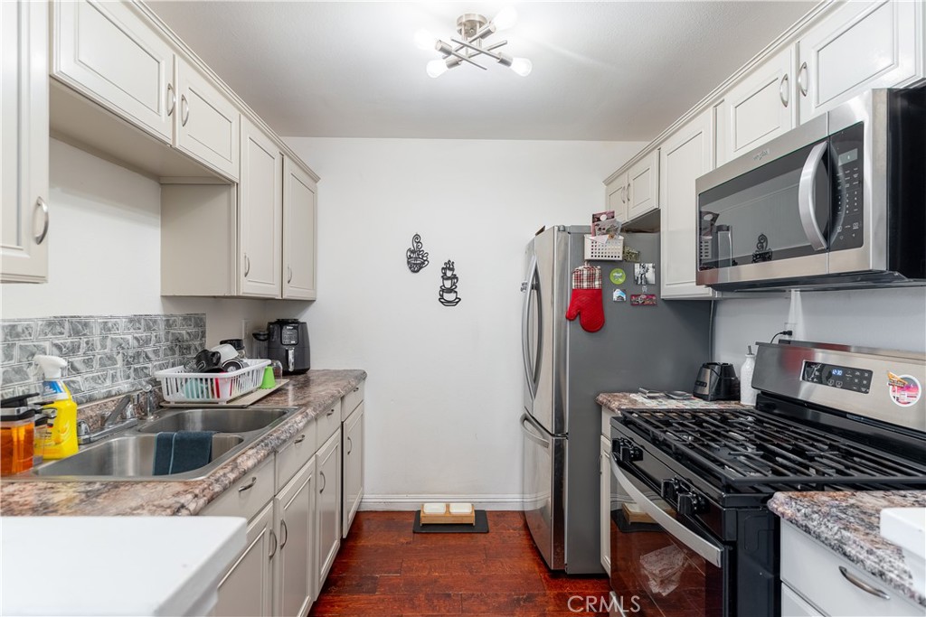 Step into this beautifully refreshed two-story condo where modern design and everyday comfort come together effortlessly. With two well-sized bedrooms and two full bathrooms, the home features a clean, cohesive look with hardwood floors and tile throughout, plus energy-efficient windows that bring in an abundance of natural light. The open floor plan creates a welcoming flow, perfect for cozy nights in or hosting friends. The updated kitchen is both stylish and functional, showcasing new stainless-steel appliances, including a gas range and microwave, ready for all your cooking adventures. Upstairs, both bedrooms offer a serene escape with rich hardwood flooring and generous space. As a desirable end unit, you’ll appreciate the added sense of privacy, along with your own private patio—ideal for morning coffee or evening relaxation. An attached two-car garage with direct access adds everyday convenience, while the gated community setting provides peace of mind. Located near the 60, 10, 15, and 71 freeways, commuting is simple, and nearby amenities include Sultana Elementary, De Anza Middle School, Ontario Airport, Ontario Mills, and Victoria Gardens—all just minutes away. Move-in ready and thoughtfully updated, this condo is a wonderful opportunity for first-time buyers or anyone looking for a fresh start in a connected, comfortable community.