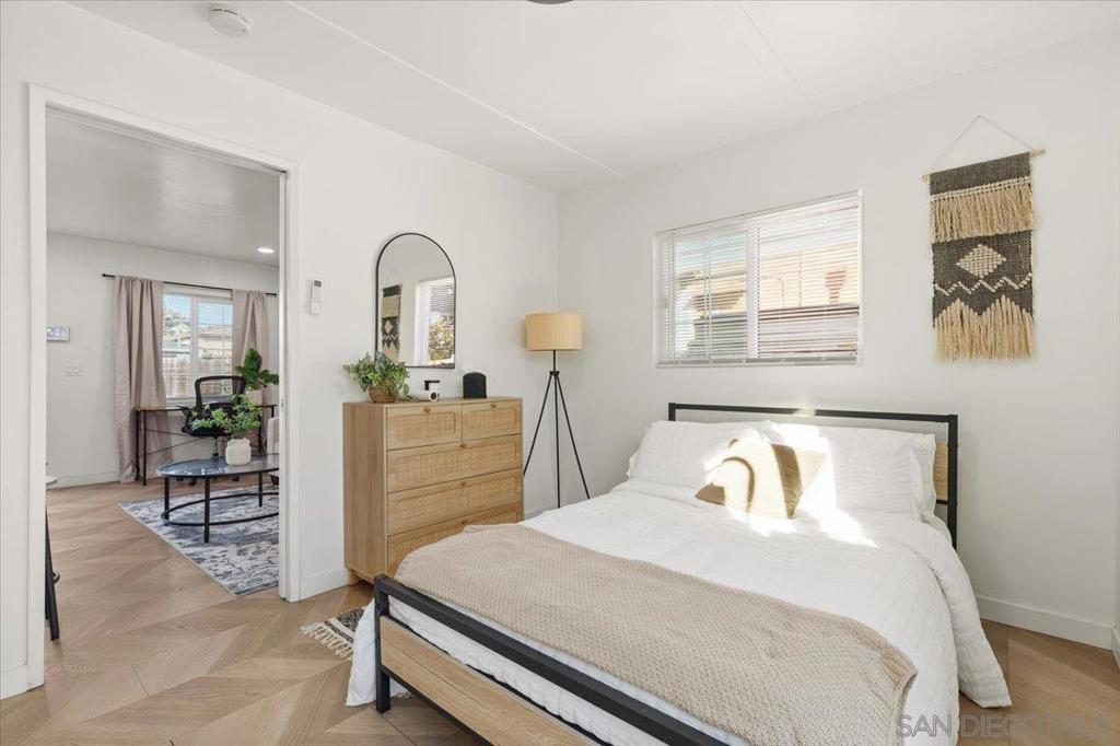 Charming, Private & Move-in ready! This private 1BD/1BA home is a rare find! Featuring modern chevron-pattern flooring, recessed lighting, and a sleek kitchen with stainless steel appliances and new cabinetry. The spa-like bathroom boasts floor-to-ceiling tile and Moroccan-pattern flooring. Enjoy your covered deck with included washer/dryer, plus upgrades like a new roof, windows, stucco, and driveway. Tucked away on a private lane near Kimball Park, schools, and shopping. Turnkey and ready to go!