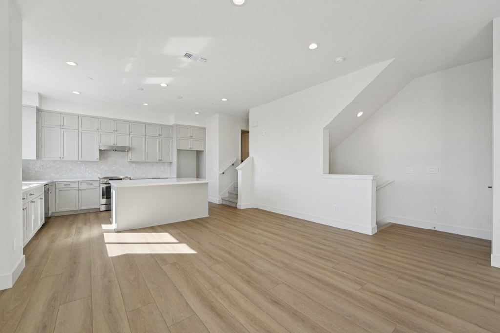Homesite 69 at Skyline offers approximately 1,754 sq. ft. of thoughtfully designed living space across four levels and that is move-in ready! The home features a modern chef’s kitchen equipped with elegant gray Shaker-style cabinetry, upgraded quartz countertops, and premium Bosch stainless steel appliances. Luxury Vinyl Plank (LVP) flooring extends throughout the main living level, while upgraded carpet in the bedrooms adds comfort and warmth. The entry level includes a private bedroom with a walk-in closet and en-suite bath—ideal for guests or a home office. Upstairs, the third floor provides a private retreat in the primary suite, complete with a spacious walk-in closet and spa-inspired bathroom. A secondary bedroom, hallway bath, and convenient laundry closet complete the third level. The highlight of the home is the expansive fourth-floor rooftop deck with a built-in dry bar, creating the perfect outdoor living space for relaxing, entertaining, or enjoying panoramic views. Additional storage on the rooftop level adds everyday convenience. Throughout the home, premium Kohler plumbing fixtures and stylish chrome hardware lend a sophisticated touch. Views: Downtown