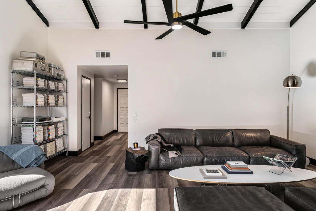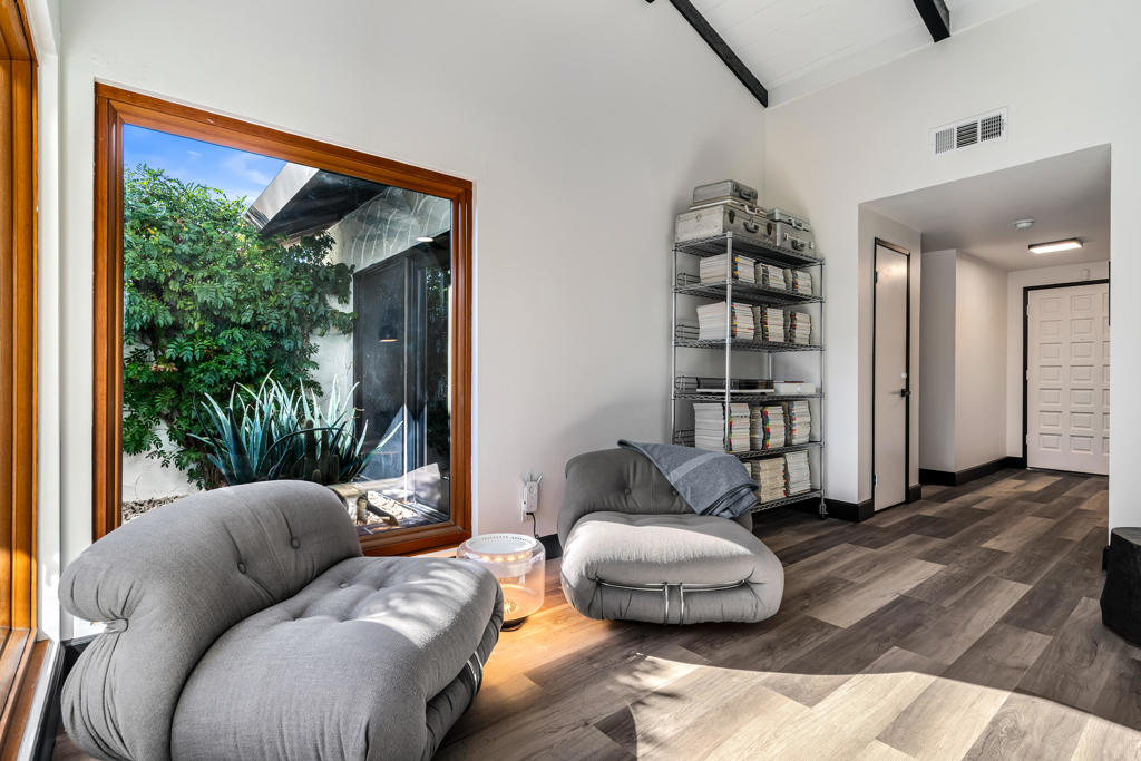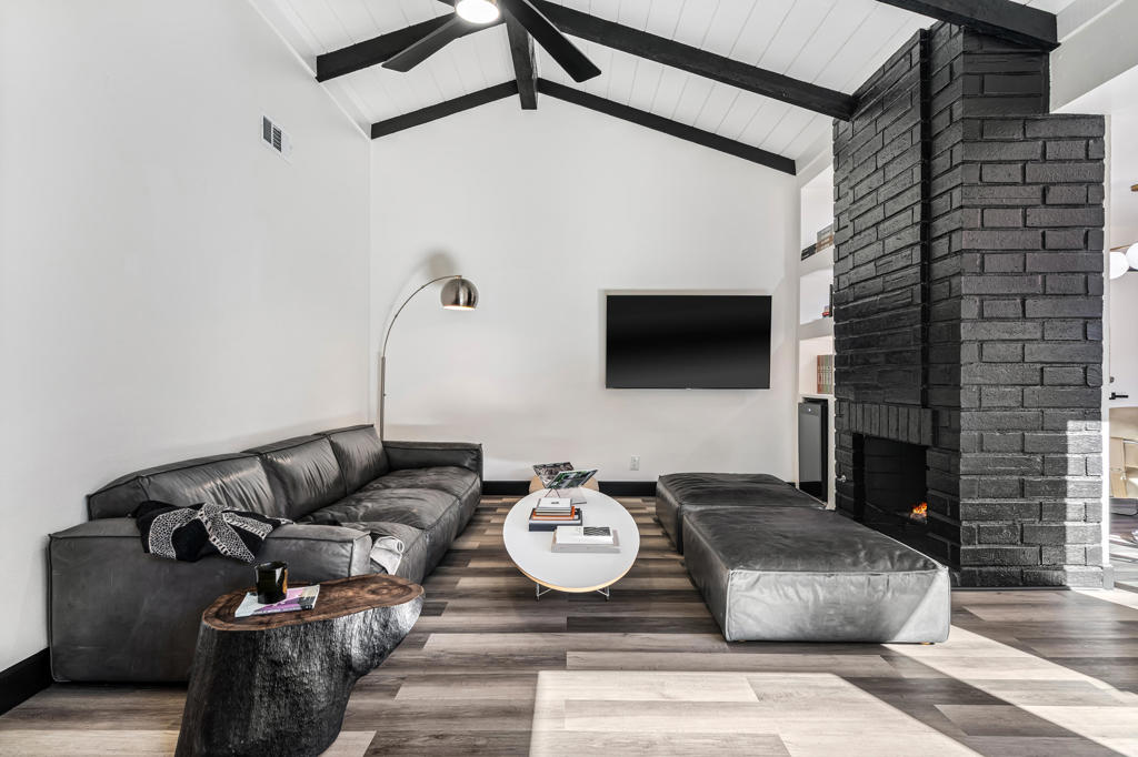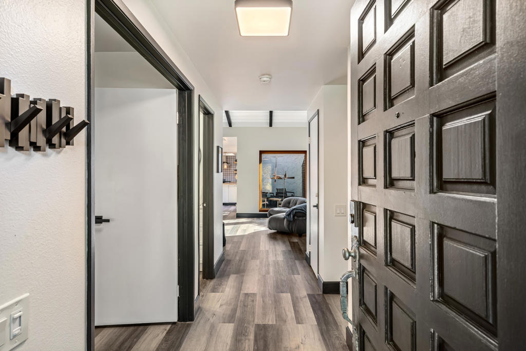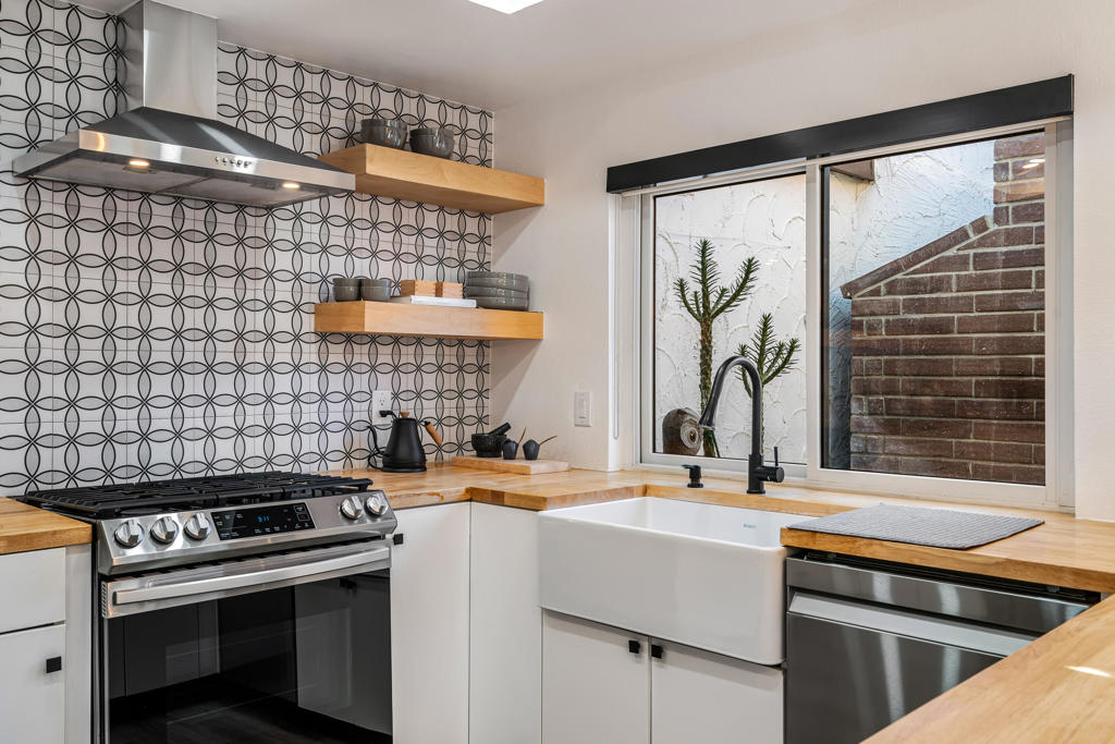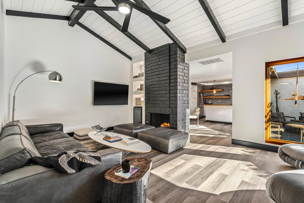 Meticulously re-done and beautifully designed, this stunning 2-bedroom 2-bath condo is located in the highly sought-after Canyon Sands community of Palm Springs. Thoughtfully updated throughout, the home features stylish vinyl plank flooring and a light, airy layout that blends comfort with modern desert living. The spacious living room showcases vaulted ceilings with exposed beams, a cozy fireplace, and gorgeous oak-framed, unobstructed picture windows that flood the space with natural light. The chef's kitchen is both functional and charming, offering butcher block countertops, a classic farmhouse sink, and ample workspace, perfect for everyday living or entertaining. The primary suite is a serene retreat with vaulted ceilings, direct access to a peaceful private courtyard patio, a large walk-in closet, and a beautifully appointed en-suite bath featuring a large walk-in shower. A second bedroom and bath provide flexibility for guests or a home office. Enjoy outdoor comfort on your beautifully landscaped private patio year-round with a retractable awning, ideal for hot summer days. Additional highlights include a private two-car garage with laundry and a mini-split to maintain a comfortable temperature year-around. Located in a quieter section of the community, this home features the added convenience of direct entry to your front door from Linden Way. Canyon Sands offers resort-style amenities, including 7 pools and spas, 2 saunas, 5 championship tennis courts, and 3 pickleball courts. HOA dues include water, cable and internet.Centrally located in the Coachella Valley, this exceptional home offers peaceful living with convenient access to everything Palm Springs has to offer.