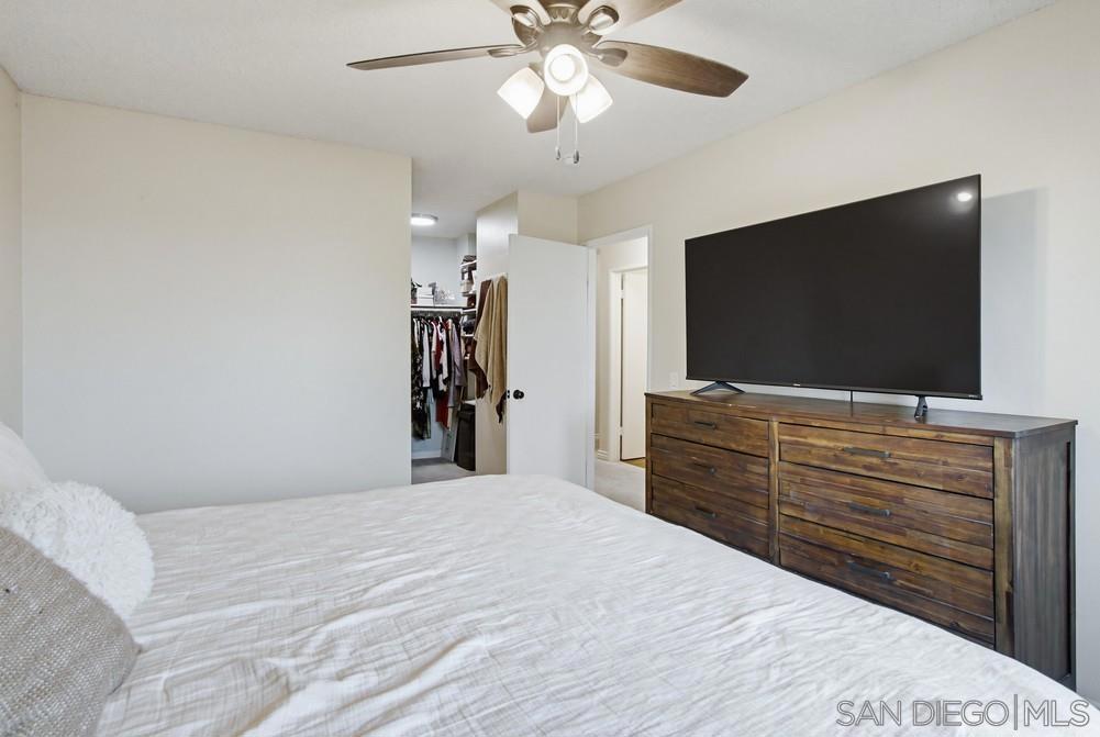 Beautifully updated, light-filled end-unit townhome featuring three spacious bedrooms and two full baths. Thoughtfully designed, the home showcases designer composite wood flooring and a renovated high-end kitchen with stainless steel appliances, custom cabinetry, and quartz countertops. The large great room includes a cozy fireplace, dining area, new flooring, energy-efficient dual-paned windows, and a sliding door that opens to a generous private patio—perfect for outdoor dining or relaxation.The lovely primary suite offers a large closet and an upgraded ensuite bath. Two additional generously sized upstairs bedrooms—one with a private balcony—are ideal for guests or a home office.This beautiful home also includes a full-sized in-unit laundry, an attached one-car garage, and an additional assigned parking space. Ideally located near Mesa College, Sharp and Rady hospitals, and the renowned San Diego Convoy Food District.