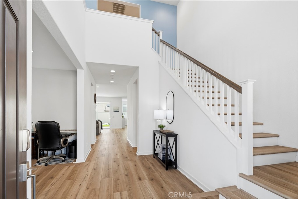 Welcome home to this stunning corner lot Skyline residence designed for real life, gathering, and growing together. This bright and beautifully neutral Lyra Plan 3 offers 5 bedrooms, 4.5 baths, a spacious loft, a downstairs den, and a rare multi-gen suite with its own private entrance, perfect for extended family or guests. From the moment you step inside, you’ll feel how open and welcoming this home is. Luxury vinyl plank flooring, recessed lighting, quartz countertops, and a custom built-in electric fireplace add warmth and style throughout. The open concept layout flows effortlessly, making everyday living and entertaining feel easy and connected. At the heart of the home is a gorgeous chef’s kitchen that overlooks the dining area, family room, and backyard. Featuring upgraded white quartz countertops, a timeless tile backsplash, warm brown shaker cabinetry, stainless steel appliances, a farmhouse sink, and a walk-in pantry. Just off the kitchen is a thoughtfully designed guest wing with its own bedroom, full bath, and additional living space. A flexible downstairs den near the entry offers the perfect spot for a home office, playroom, or second living area. Upstairs, you’ll find a large open loft, a well appointed laundry room with plenty of storage, and the remaining bedrooms, one with its own en-suite bath. The private primary suite is a true retreat, complete with peek-a-boo mountain views and sparkling city lights at night. The spa-like bathroom features dual sinks with white quartz countertops, an oversized soaking tub, a tiled walk-in shower, upgraded flooring, and a generously sized walk-in closet. Step outside through expansive California doors to a backyard that truly completes the home. Perfectly manicured and designed for indoor-outdoor living, it offers a covered California room with a drop down screen, a built-in fire pit, spacious side yards, and plenty of grassy space for kids and pets to play. Additional highlights include direct access to a two car garage with ample storage and close proximity to Skyline’s sought-after amenities. Enjoy Basecamp, and the Lookout, playgrounds, clubhouse, resort-style pool and spa, splash pad, BBQ areas, and a glass-enclosed gym, all set against breathtaking valley views. Miles of hiking trails, nearby shopping, and easy access to the 14 freeway make everyday life seamless. This is more than just a house, it’s a place to create memories, and grow for years to come.
