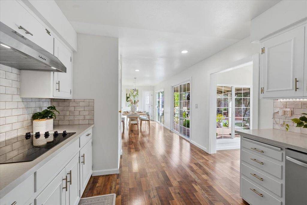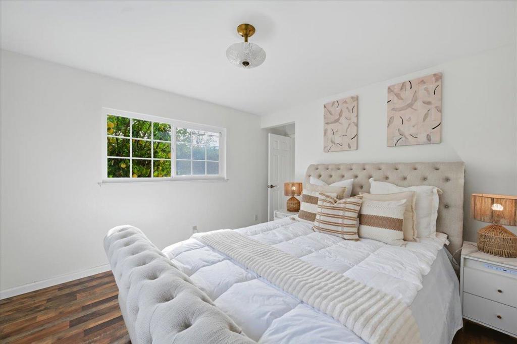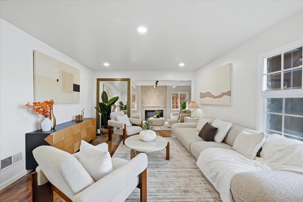 Step into a world of modern elegance in this beautifully appointed residence, where an open-concept design and airy light wood flooring create a bright, seamless flow for daily living. The heart of the home is the sophisticated kitchen, meticulously designed with crisp white Shaker cabinetry, a textured tile backsplash, and a stainless steel gas range with a professional vent hood. An expansive center island, illuminated by chic pendant lighting, offers a breakfast bar that serves as the perfect gathering spot for entertaining. Private quarters are equally impressive, highlighted by a grand primary suite that features a graceful arched entry and a dedicated sitting area, offering a true retreat within the home. The spa-inspired bathrooms showcase modern luxury with double vanities, sleek integrated sinks, stone-look countertops, and expansive wall-to-wall mirrors. enhanced by a versatile home office and recessed lighting throughout, this home combines style and function in a quiet, established neighborhood near top-rated schools and shopping.