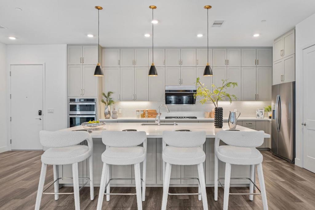 Welcome to Metro Crossing Luxury Urban Living in Fremont! Discover this stunning 2-beds, 2- baths condo with 1,725 sq. ft. of single-level living and soaring 10-ft ceilings. Built in 2021 by Toll Brothers, this home blends modern design with everyday comfort. The open floor plan extends to an oversized covered balcony perfect for indoor/outdoor living. The chefs kitchen boasts a massive quartz island with breakfast bar, ceiling-height cabinetry, quartz countertops with stone backsplash, stainless steel appliances, and large pantry. Both bedrooms are private suites at opposite ends of the home. The primary suite includes walk-in closet, dual sinks, and glass-enclosed shower. The equally spacious secondary suite has access to a generous hallway bath ideal for guests. Additional highlights: Private 2-car side- by-side garage with EV charging; In-unit laundry with washer/dryer hookups & cabinets; Gated building with elevator; Resort-style amenities; Clubhouse with event spaces, fitness center, lap pool, BBQ, landscaped common areas. Features a top-rated 10/10 elementary and 8/10 high school; Steps from Warm Springs BART, with easy access to I-680/880, major tech campuses, and shopping/dining. More than a condo this is modern, convenient, elevated living.