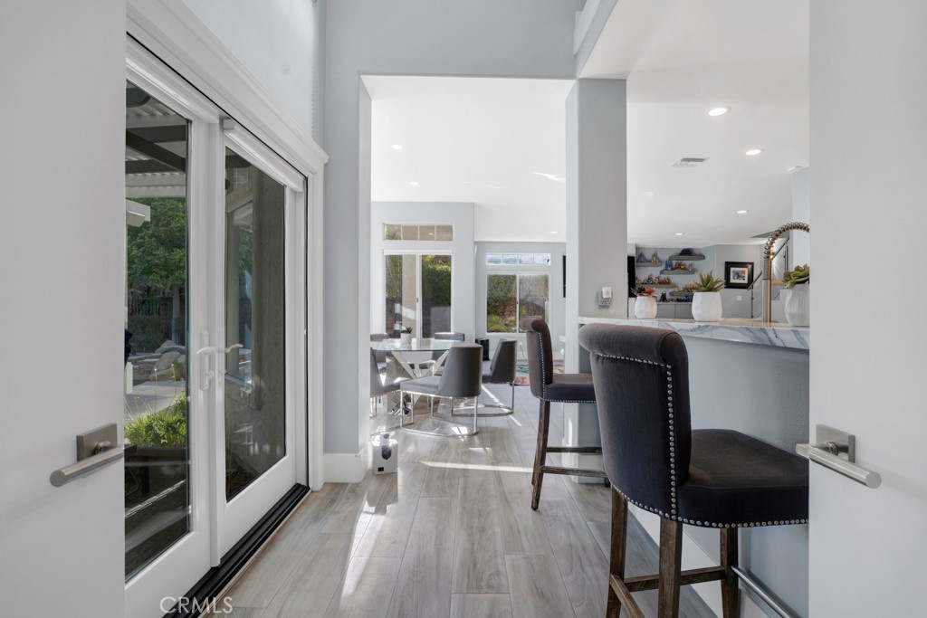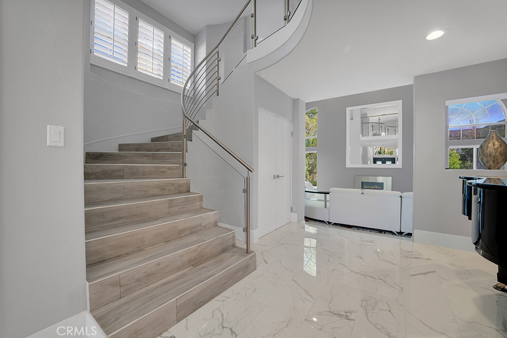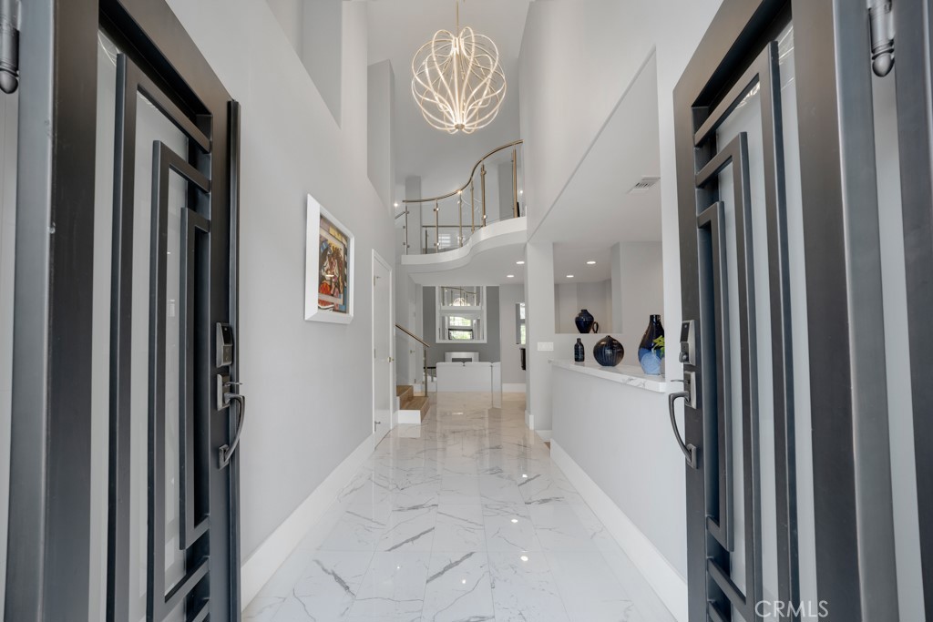 Featured in Malibu Magazine Located in the highly desirable Three Springs neighborhood. This home offers the perfect blend of luxury, comfort & community. This exceptional, fully updated home offers striking architectural, refined modern interiors, & a true resort-style backyard in a private, scenic setting. The grand custom double door entry open to a dramatic two-story foyer w/polished marble-style flooring, a statement chandelier, & sweeping contemporary LED lighted staircase. The main living spaces are highlighted by soaring ceilings, expansive windows & abundant natural light. There are 5 bedrooms & 4.5 baths w/ 4,258 sqft situated on a 13,783 sqft lot. The formal living room features a sleek wall-mounted linear fireplace & overlooks the picturesque backyard. The beautifully remodeled chef’s kitchen is designed for both entertaining & everyday living, featuring custom cabinetry, quartz countertops, a large center island w/gas cook-top, stainless steel appliances, double ovens, built-in stainless-steel refrigerator, stainless steel sink, recessed lighting, large pantry, designer tile backsplash, breakfast room & opens seamlessly to the spacious family room w/recessed lighting, built-in storage, & a modern fireplace feature. Multiple flexible rooms offer versatility for home offices, fitness spaces, or guest accommodations ideal for today’s work-from-home lifestyle. The primary suite is a private retreat w/a custom walk-in closet & a spa-inspired bathroom. The primary bath includes a large glass-enclosed walk-in shower w/stone tile surround, pebble flooring, rainfall shower head, built-in bench seating, dual vanities w/modern cabinetry & integrated lighting. The backyard is a private resort-style oasis designed for year-round enjoyment. Highlights include a custom infinity pool & raised spa w/waterfall features & ambient lighting, expansive patio & entertaining areas, a built-in BBQ w/bar seating, fire feature, & elevated deck spaces surrounded by mature landscaping. Scenic hillside views & privacy create a serene environment. Additional features include a three-car-attached garage w/direct house access, a laundry room w/sink, central AC/Heat for year-round comfort w/dual zone system, tank-less water heater, 16.5 KW of solar panels & motorized blinds. Close to parks, serene hiking trails & world class shopping, dining & entertainment along w/award-winning Las Virgenes Unified School District.