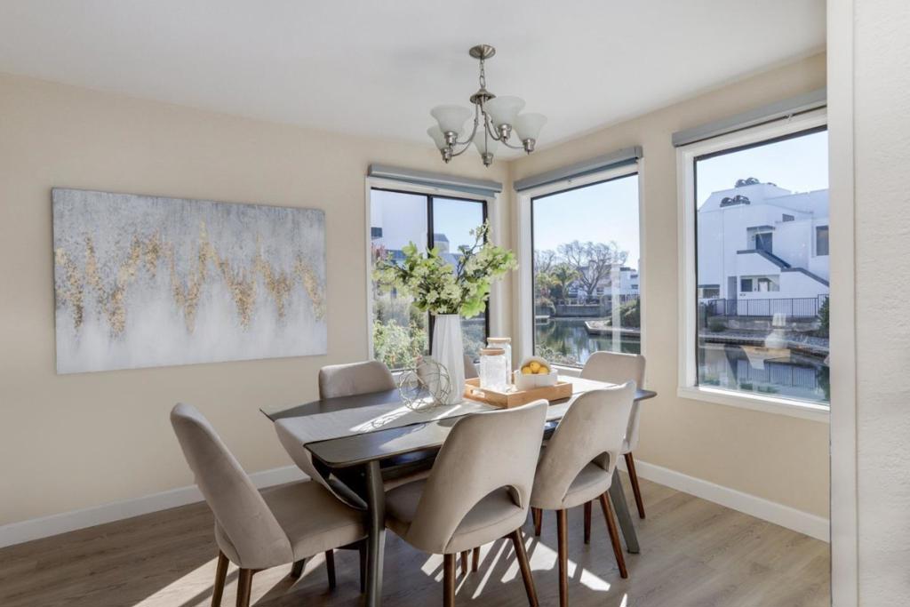 A must-see beautiful end-unit waterfront condo at the Islands. Nestled on a quiet residential street, this property offers the perfect blend of comfort, convenience, and lifestyle. Enjoy a bright and functional layout with spacious living areas designed for both everyday living and entertaining. Large windows provide abundant natural light, while the thoughtful floor plan offers excellent flow throughout the home. The private outdoor patio with wide water views is ideal for relaxing. Step inside to an open and inviting layout featuring a spacious living room, dining area, and a family room just off the kitchen. The updated kitchen is designed for both function and style with stainless steel appliances, a built-in stove and microwave, and plenty of storage. Luxury vinyl plank flooring and recessed lighting flow throughout, enhancing the home's abundance of natural light. The kitchen and baths are tastefully renovated with quartz counters and high-end finishes. Situated at the end of a quiet canal, the neighborhood blends resort-style living with everyday convenience just minutes from Leo J. Ryan Park, the Bay Trail, and Bridgepointe Shopping Center. Commuters will love the easy access to Hwy 92 and the San Mateo Bridge, connecting you to Silicon Valley and San Francisco.
