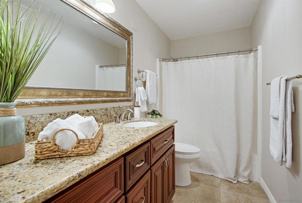 Beach investors, second home, and first time home buyers, check this one out! A true gem for live in, vacation home, or rental possibilities. A beautiful condo with an open concept living design boasting a second floor pool view that is private and easily accessible. The unit was completely renovated top to bottom. All done with permits and architectural oversight. Pride of ownership is evident, never rented out and sparsely used as a 2nd home. The extra large kitchen features wood cabinets, granite countertops, stainless steel appliances, a grand island that seats 5, under and over cabinet lighting, laminate wood floors, and more. Plus a huge walk in pantry that can fit a bike and all your supplies. Dual master suites are set up on opposite sides of the unit, each with private bathrooms. One bathroom has been opened up making the closets and bathroom bigger, plus a tile shower, and tile ceramic flooring in both bathrooms. Additional upgrades include new paint throughout, new lighting, dual pane vinyl windows, crown molding, marble fireplace, ceiling fan, new electrical panel, mirrored closet doors, and newer carpet in the bedrooms. The Plaza is a luxury 24 hour guard gated community with a grand lobby, 4 pools, spas, 5 tennis courts, a library, game room with billiards, and onsite gym. All located in the famous North Pacific Beach. Walking or biking distance to the beach and Mission Bay, shops, bars, and restaurants. Easy access to I-5 will get you all over the county.