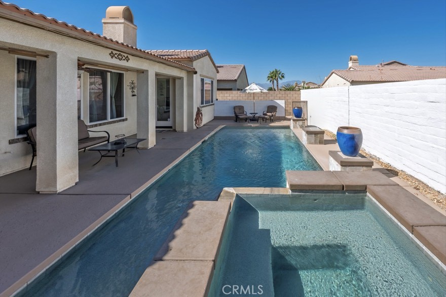 TURNKEY, POOL, SPA & PERFECT for SHORT TERM RENTAL! This beautifully remodeled 3 bedroom 2 bath home located within the Terra Lago Community has a private pool, spa and amazing mountain views! Its community offers amenities such as a community clubhouse, a 3 acre lake, water sports, gym, a playground, BBQ area, a community pool/spa, 24 hour gate access, high speed internet, Direct TV cable and is adjacent to a golf course. The home features a spacious open-floor plan with a great room, gas fireplace, open kitchen, hardwood floors, high ceilings and a primary bedroom with en-suite bath. The kitchen has beautiful wood cabinetry, quartz countertops, tile backsplash, a center island with seating and built-in appliances. The spacious primary bedroom overlooks the pool area and has a large ensuite bathroom with soaking tub and walk-in shower. Additionally, the home has a salt water pool and spa, outdoor patio with pergola, EV charging station, automatic sprinkler/drip system and a spacious high ceiling 2 car garage. Enjoy the best Indio has to offer located just minutes to golfing, hiking trails, casinos, restaurants and Coachella!