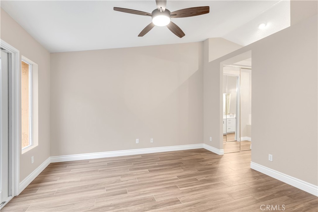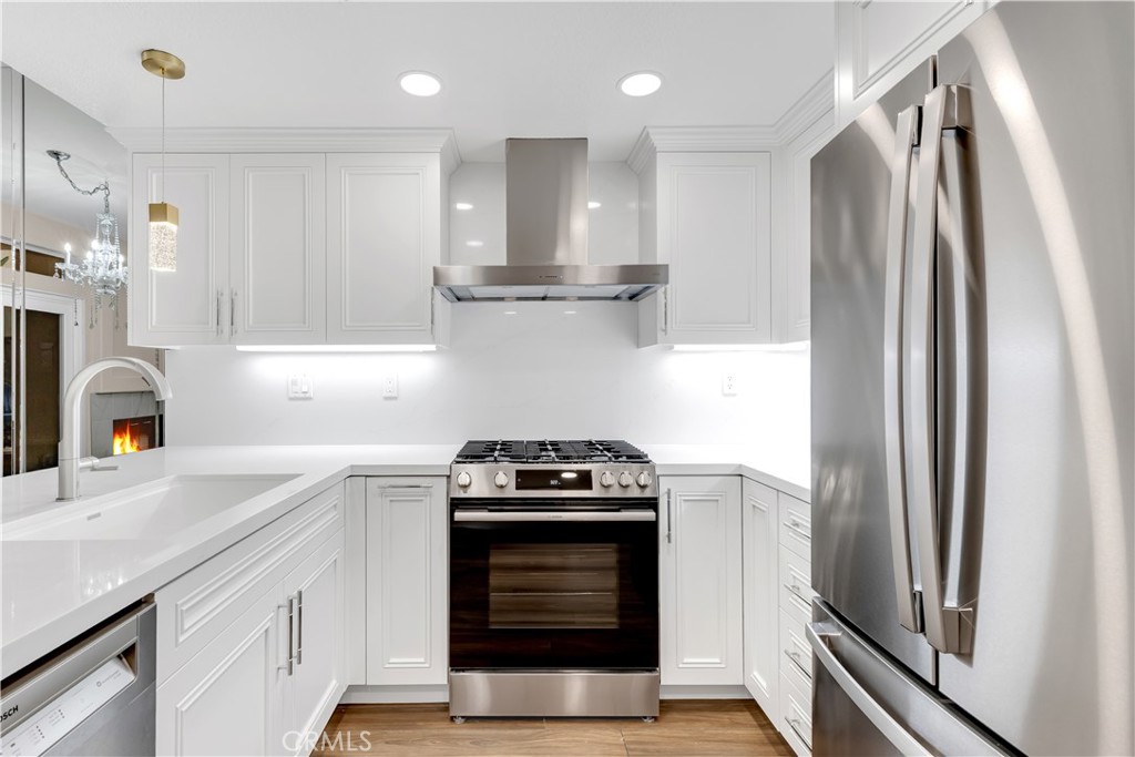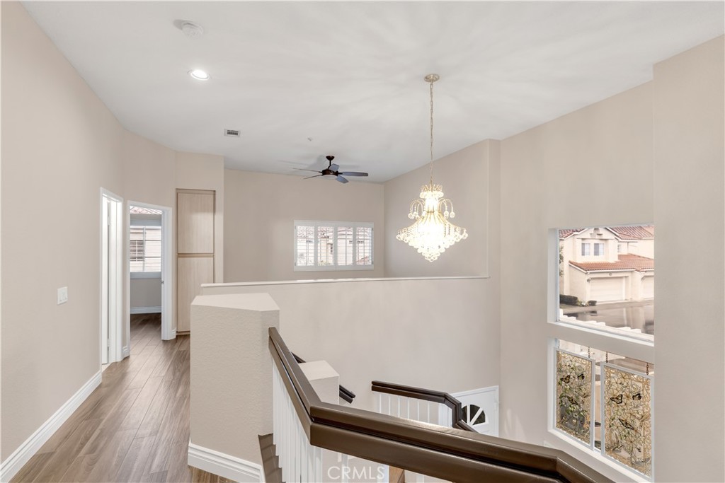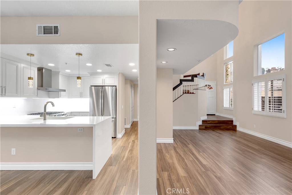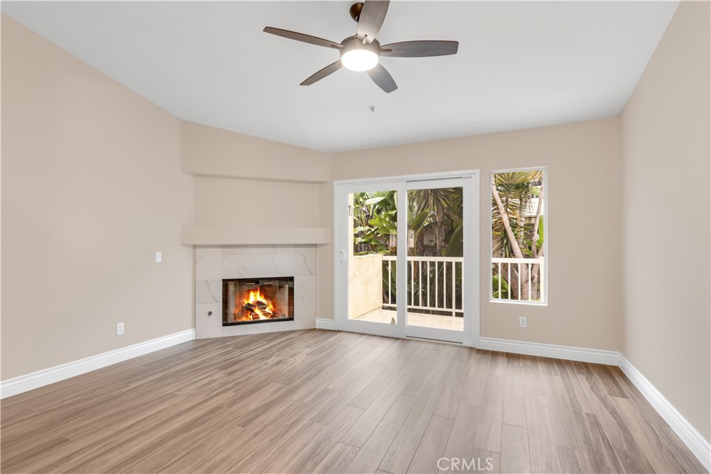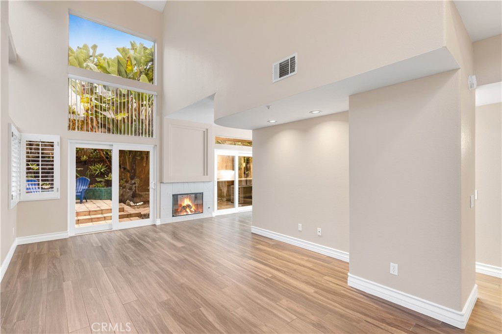 Beautifully upgraded and move in ready end unit condo featuring 1,547 sqft with two bedrooms plus a huge loft, two and a half bathrooms, a two car attached direct access garage, AC and a private spacious wraparound backyard. New interior paint just finished throughout the house in 2026. Twenty foot vaulted ceilings allow plenty of natural light throughout the downstairs living area. Italian porcelain wood style flooring is found throughout the entire house which is very easy to clean and aesthetically stunning. The kitchen was just fully renovated and finished in January 2026 and never been used. This showcase chef's kitchen has quartz countertops with a waterfall edge, custom white cabinetry, a coffee bar area, new pendant lights and a Bosch dishwasher. From the 2026 remodel the Bosch gas stove, GE fridge and a microwave all are brand new and never used. Downstairs is a half bath for guests as well as a laundry closet. Upstairs, you'll find two spacious bedrooms with ceiling fans, two full bathrooms and a large loft. The master bedroom has tile floors, an ensuite master bath, two mirrored closets, a gas fireplace and a balcony overlooking the backyard. The guest bedroom has tile floors and a spacious closet. The large loft also has tile floors. Enjoy the SoCal weather in your backyard oasis with plenty of entertaining space, new landscaping that is maintained by the landlord's gardener. HOA include an ocean view pool & spa. Nearby are hiking trails, LifeTime Fitness, shopping centers and the Rancho San Clemente Sports Park with beach volleyball, basketball courts and a playground.