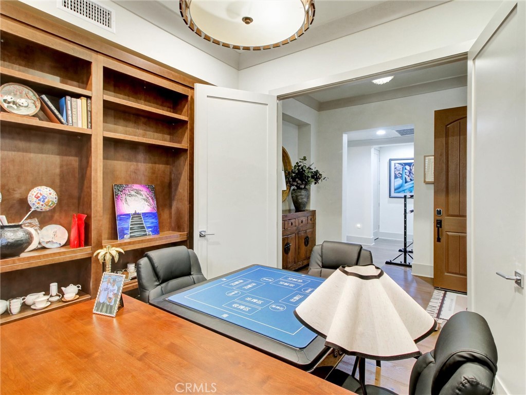 Stylish, elegant, and luxurious, this upscale Pasadena condo at Ambassador Gardens offers three bedroom suites and 3.5 baths, with every room opening to a grand terrace and featuring high-end finishes throughout. Enter through a sophisticated entry and when you set foot on the gorgeous flooring you will instantly notice: a custom-built library with organizers sits to the left, while to the right an open floor plan filled with natural light leads to a grand living room anchored by a striking stacked-stone wall and linear fireplace. An amazing first impression is just the start of this impressive property. Bifold glass doors open the living room to the terrace. A formal dining area separates the living space from the gourmet kitchen, which features an oversized center island with quartz countertops, integrated sink and breakfast bar seating, top-of-the-line stainless appliances (Wolf range, Sub-Zero refrigerator and wine refrigerator), and a walk-in pantry. The three carpeted bedrooms are private and elegant; the master suite includes custom built-ins, French doors to the terrace, a luxurious master bath and a spacious walk-in closet. Additional highlights include wide-plank flooring, 11-ft ceilings, designer fixtures and finishes, and a dedicated two-car garage with ample storage accessed by elevator. The community boasts picturesque grounds, resort-quality pool, and Italianate gardens, and is conveniently close to excellent restaurants and markets. Must See!!!