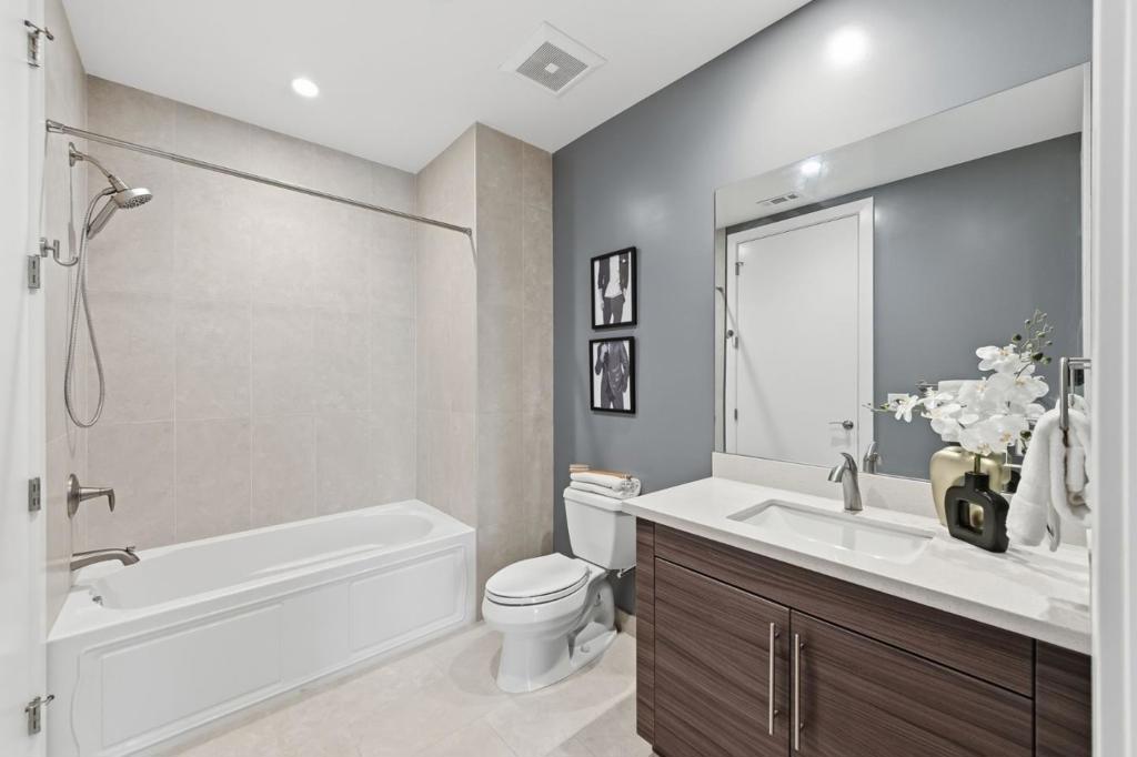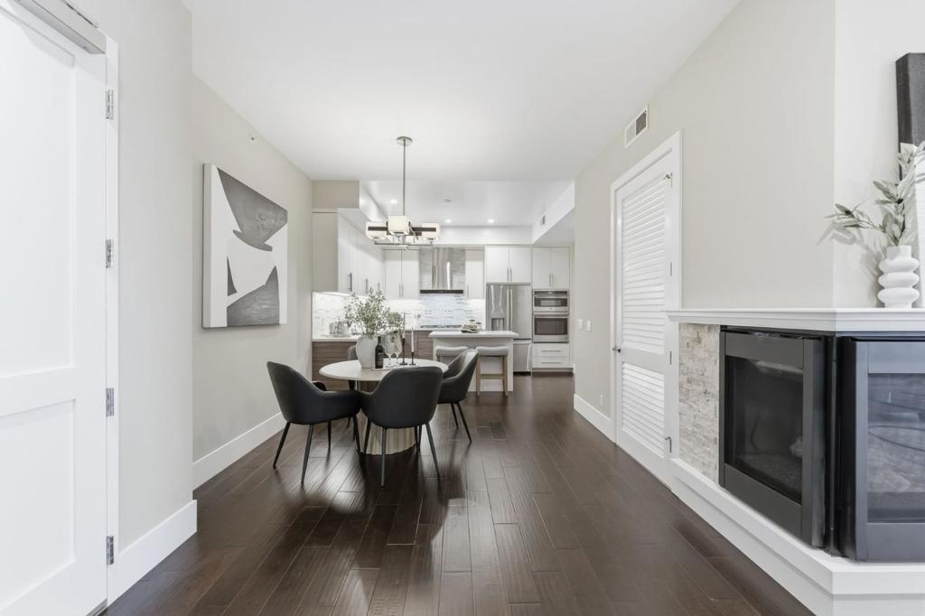 Rarely available oversized 2-bdrn condo, larger than many 3 bdrm units in building. This beautifully updated top-floor residence offers an expansive living area w/ ample room for a dedicated home office, thoughtfully set apart from the main entertaining spaces. Set in a newer, meticulously maintained building, this home blends comfort, style, & convenience. Soaring ceilings & abundant natural light enhance the open-concept layout, ideal for both everyday living & entertaining. The gourmet kitchen is a chef's dream, featuring stainless appliances, quartz countertops, & custom cabinetry. The spacious living area flows seamlessly to a private patio, perfect for relaxing or dining al fresco. The generous primary suite includes a nicely finished walk-in closet & spa-inspired bath. The 2nd bdrm (en-suite) offers flexibility for guests, a home office, or family needs. Additional highlights include in-unit walk-in laundry room, a large storage area off the kitchen, central A/C, 2 assigned parking spaces, a public EV charger, & low HOA dues. Residents also enjoy a communal BBQ area, ideal for casual gatherings and entertaining. Ideally located in desirable Belmont, close to top-rated schools (buyer to verify), Caltrain, major commuter routes/tech shuttles, & vibrant shopping and dining.