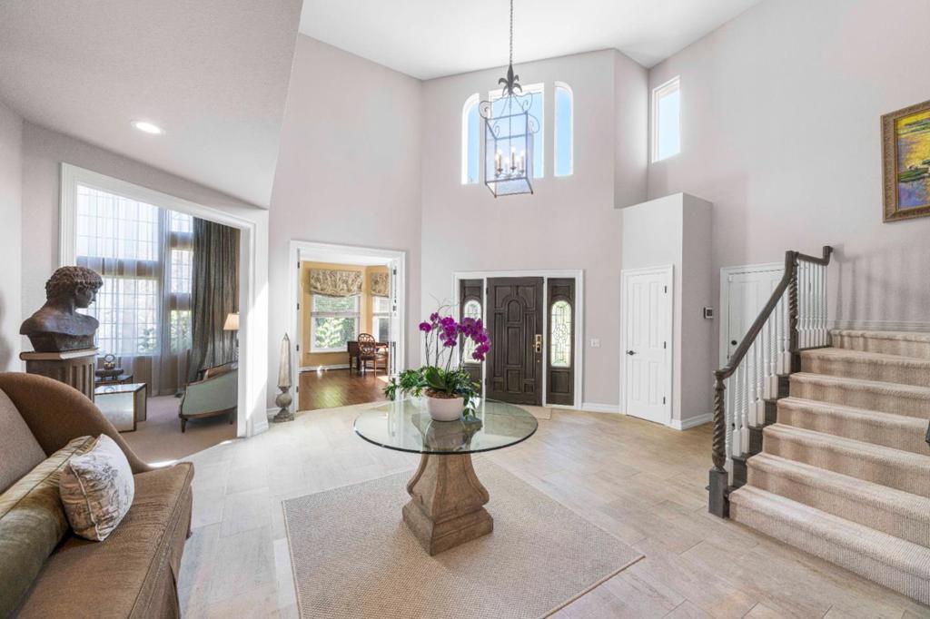 Simply one of the most elegant, and beautifully decorated homes in Ocean Colony! Olive trees, flowering shrubs, and a bubbling fountain, greet you at the front entry. An impressive two story foyer sets the stage for designer finishes and decorator details throughout. Custom cabinets, closets, window coverings, & paint finishes make this home truly spectacular. Attention to detail is evident from the kitchen, to the grand primary suite, exuding quiet luxury and a bird's eye view across two fairways and the 11th green. The striking tray ceiling with soft ambient lighting enhances the serene atmosphere, while the spa inspired bath offers Venetian plaster, separate vanities, steam shower, and a soaking tub positioned to take in the tranquil golf course views. Two additional spacious bedrooms are located the upper level, as well as a full bath and laundry room. The 4th bedroom & adjacent bath are on the lower level with an inviting sunny office overlooking the garden. Enjoy a custom outdoor fireplace, and huge flagstone patio, as you watch the golfers sink their putts! This beautiful gated community with the award winning Ritz Carlton hotel just beyond the gate, is one of the peninsula's best kept secrets! Come to the coast and live the lifestyle! Nothing to do here except move in!