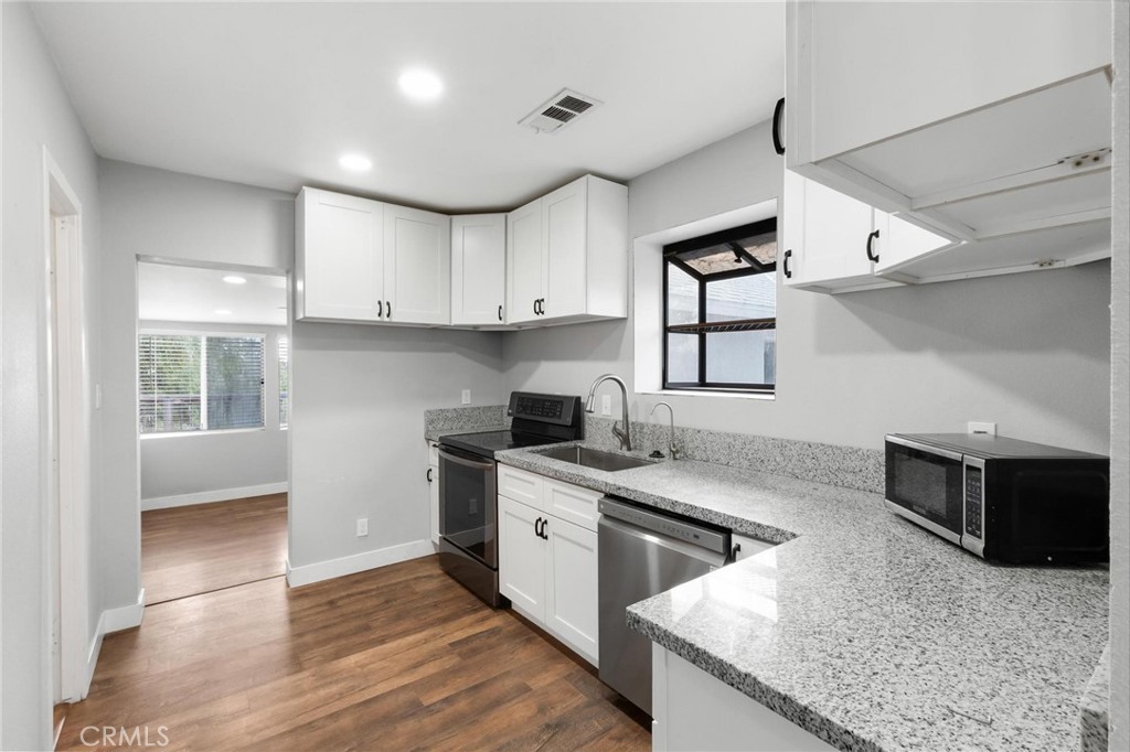 Welcome to 34789 Wildwood Canyon Road, Yucaipa — where space, privacy, and modern upgrades come together. This beautifully updated 2-bedroom, 1-bath home offers a flexible floor plan with a bonus room perfect for a home office, gym, or guest space. The light-filled living room showcases vaulted ceilings and abundant natural light, creating an open and inviting atmosphere. The updated kitchen features stainless steel appliances, quartz countertops, recessed lighting, and contemporary finishes that blend style and functionality. The upgraded bathroom, upgraded flooring, and fresh interior and exterior paint complete the home’s move-in-ready appeal. An indoor laundry room and central HVAC add everyday comfort and convenience. Step outside to a large deck overlooking the backyard, ideal for entertaining or enjoying peaceful canyon evenings. Situated on a spacious 0.34-acre lot, the property offers RV parking, a gated driveway, and an oversized, extra-tall 4-car tandem garage—perfect for vehicles, toys, storage, or workshop space. A newer roof and thoughtful upgrades throughout add long-term value. Located in a desirable Yucaipa setting with room to grow, this property delivers privacy, versatility, and endless potential—inside and out. Don’t miss this rare opportunity to own a beautifully upgraded home with exceptional garage space and land.