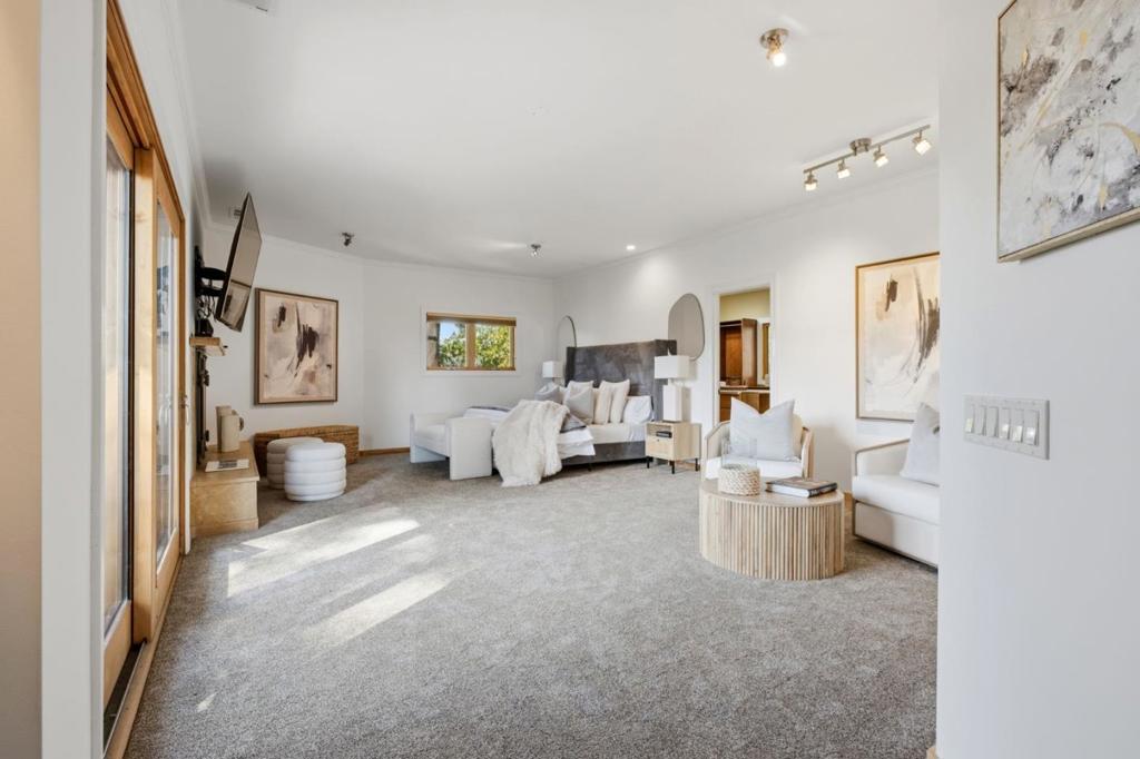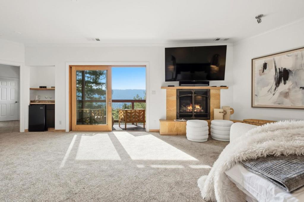 Welcome to a residence where artistry meets architecture. Set in Emerald Hills on an expansive view lot, the home was designed for those who value quality, creativity, and originality. From the custom iron gate by Burning Man artist Bryan Tedrick to the antique Santa Fe stained-glass entry window, every detail tells a story. Soaring ceilings and dual 7×20 folding glass doors dissolve boundaries between inside and out, opening to expansive decks with sweeping views. The chef's kitchen features a granite island, six-burner range with pot filler, oversized refrigerator, and custom cabinetry. The primary suite offers a spa-inspired granite bath with steam shower, soaking tub, walk-in closet, and gas fireplace. The lower level, once an art gallery, invites income potential or flexible living space with separate access. The grounds include terraced gardens, mature fruit trees, solar panels with EV charging, and cedar outbuildings ideal for a gym, studio, or retreat. Close to amenities, but it feels like a world away.