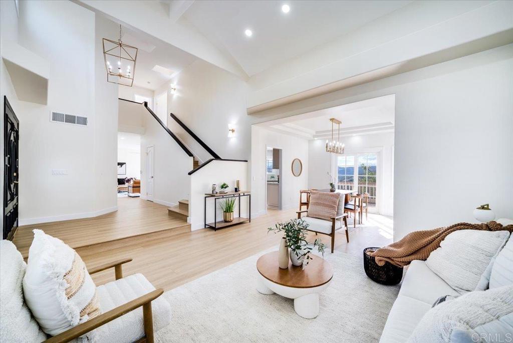 Come home to a resort everyday and you will never want to leave. This REMODELED stunner is close to brand new with jaw-dropping PANORAMIC VIEWS and tucked away at the end of a cul de sac. Resort style backyard with pebble tec POOL with huge baja step, cabana, palapa and horseshoe pit. 4 bedrooms + BONUS potential ADU below. Architectural details include soaring ceilings, plantation shutters, recessed lighting, laminate flooring, coffered ceiling and sunken living room. Dream primary suite features views forever, his and hers closets, soaking tub and separate shower. 3 car garage. All this and enjoy country club living in San Diego Country Estates with swimming, hiking, golf, tennis, pickleball and horseback riding.