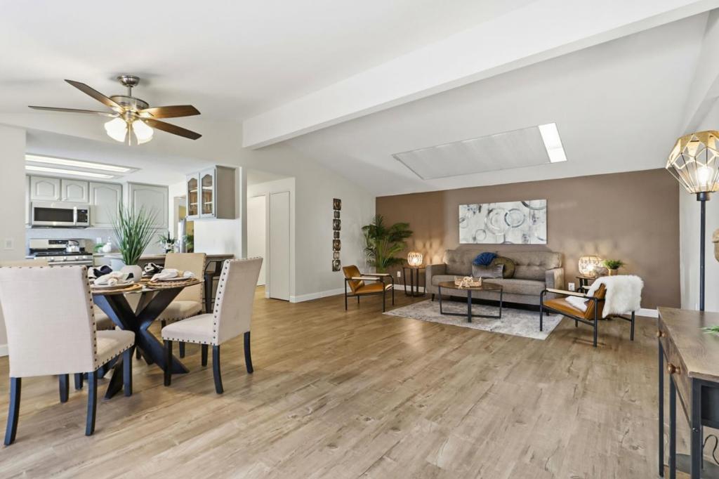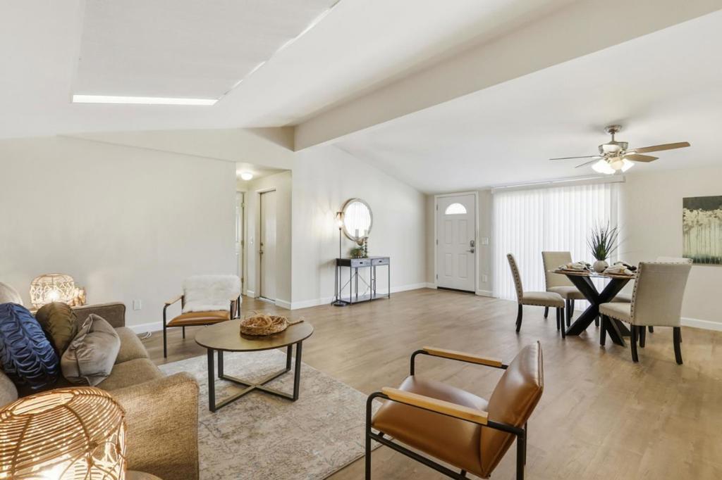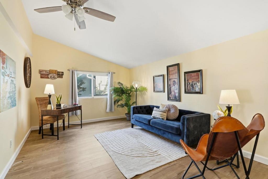Beautiful 2-bedroom garage unit centrally located between San Jose and San Francisco, this home is in the heart of Silicon Valley. Move-in-ready home in the highly desirable Plaza del Rey community. This well-maintained 2-bedroom, 2-bathroom residence offers a bright, open layout with comfortable living spaces and thoughtful updates throughout. The kitchen flows seamlessly into the dining and living areas, ideal for everyday living and entertaining. Spacious primary suite with private bath, plus a second bedroom perfect for guests or a home office. Separate laundry room with dedicated space for a full-size washer and dryer, offering added convenience and everyday functionality. This home also features a rare & private backyard, fully fenced, providing plenty of space for entertaining or simply enjoying the outdoors. As a resident, you will enjoy resort-style amenities: pools, clubhouses, a gym, and beautifully maintained grounds. Conveniently situated nearby Levis Stadium or California Great America amusement park, shopping, dining,a major freeway, and walkable to the Light rail station. A wonderful opportunity to own a turnkey home in one of the area's most sought-after communities!