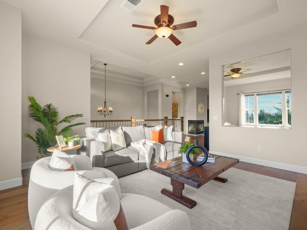 From the moment you enter, this home makes a statement—grand, warm, and effortlessly inviting. 12-foot ceilings and a striking double-sided fireplace anchor the living and dining rooms, framing beautiful sunset views and setting the tone for elevated living. Stunning hardwood floors paired with fresh interior and exterior paint create a move-in-ready feel throughout. The open kitchen is stylish and functional, featuring a built-in refrigerator, double ovens, granite countertops, and refreshed cabinetry—opening to a spacious family room with a second fireplace, making it an ideal space to gather. Thoughtful floorplan perfect for multi-generational living. The primary suite is a serene retreat with views, a walk-in closet, and a well-appointed bath. Step outside to a private backyard escape with oversized decks, two gorgeous pergolas, lush landscaping, and a jacuzzi perfect for unwinding—all while taking in the views. This home has been meticulously cared for & updated with a newer HVAC system, fresh paint inside and out, and updated lighting fixtures. Ideally located just minutes from downtown Concord and Walnut Creek, shopping, parks, and BART—this home delivers elevated design and feels custom. This home truly has a custom-built feel and vibe. A MUST SEE IN PERSON! NO HOA! Views: Ridge