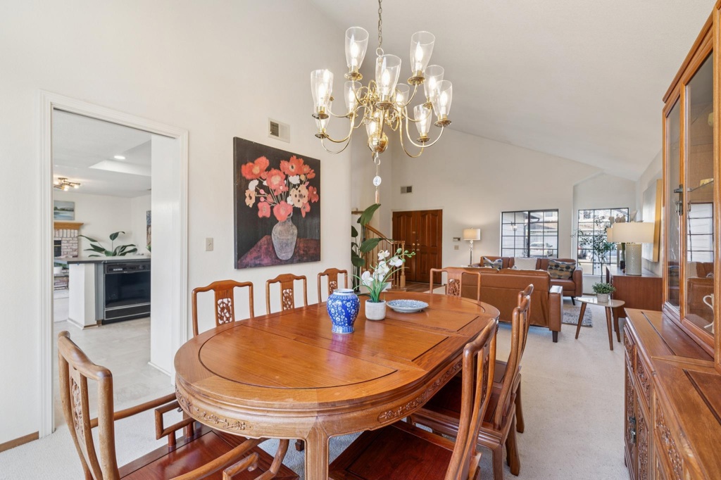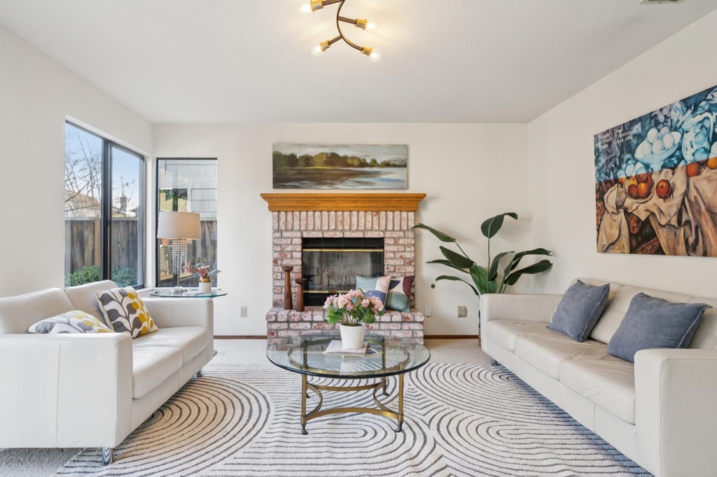 Elegant 5-bedroom home in Woodbridge Estates, Harbor Bay; includes main-level bedroom and bath. This spacious five-bedroom, three-bath residence offers an eat-in kitchen, family room, open living and dining area, and a three-car garage situated on a generous lot. The main level includes a bedroom and full bathroom, providing space for guests, a home office, or an au pair. Cathedral ceilings, hardwood floors, and an open, sunlit floor plan. The updated eat-in kitchen features Quartz counters, plenty of cabinets, a fireplace, and a sliding door to a private backyard with a gazebo, mature landscaping, flower beds, and a patio—perfect for relaxing or entertaining. The spacious primary suite has vaulted ceiling & a walk-in closet and a makeover primary bath with walk-in shower and bathtub. Located 2 blocks from the SF Bay biking/walking trail & just minutes' walk to top performing schools!