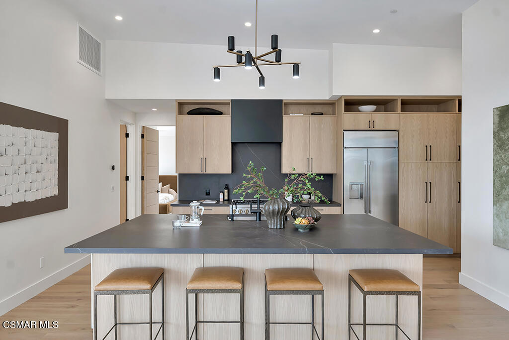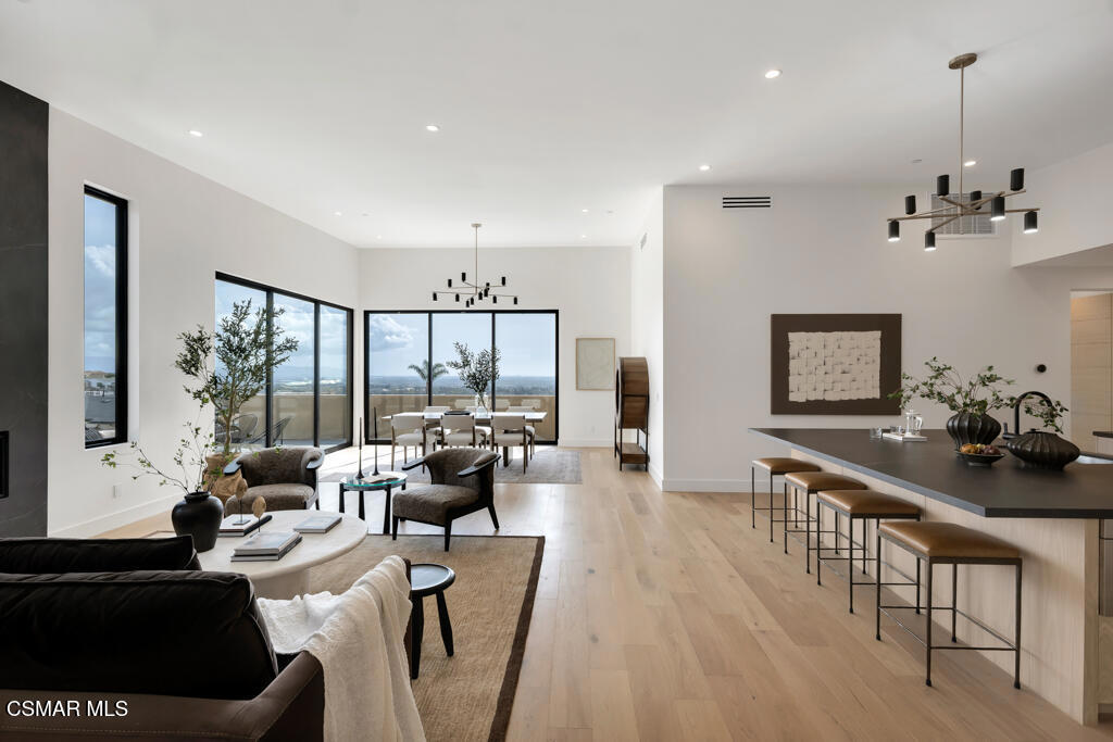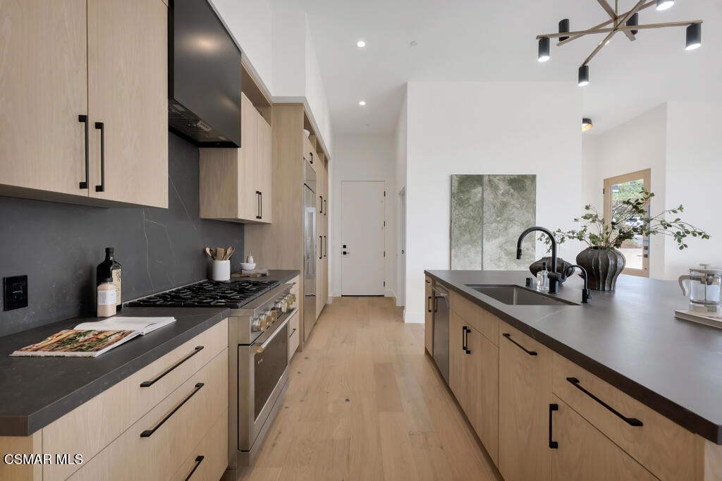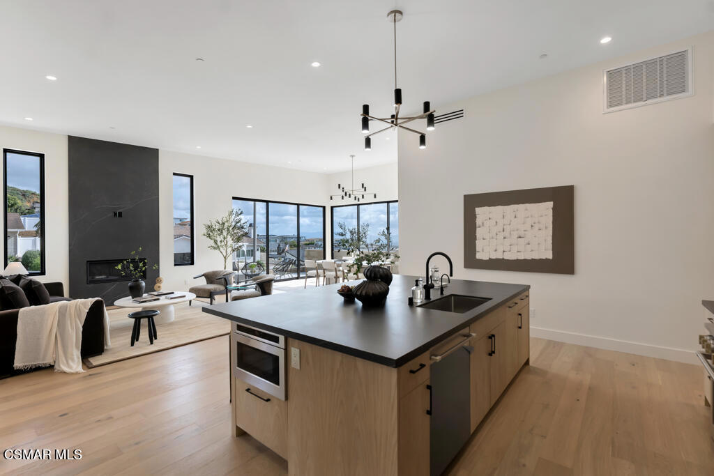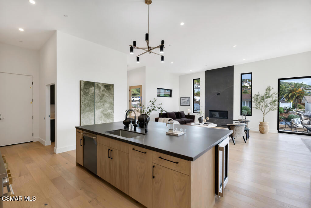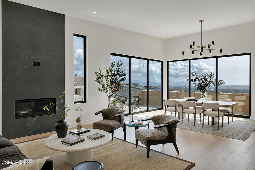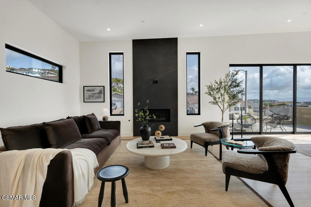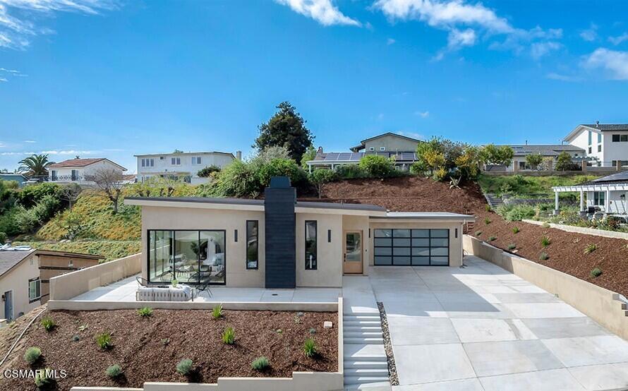 Rare opportunity!!! - to own a newly completed, one-of-a-kind ocean view modern masterpiece nestled in the sought-after Ventura foothills. This stunning 3-bedroom, 2-bathroom home offers 2,025 sq ft of contemporary architecture, elevated finishes and breathtaking coastal vistas. Striking modern curb appeal sets the tone as you step inside to vaulted ceilings, engineered hardwood floors, recessed lighting and dual pane windows that flood the home with natural light. The living room is a true showpiece, highlighted by a dramatic floor-to-ceiling Dekton surround gas fireplace and expansive double sliders that frame the spectacular ocean view and create seamless indoor-outdoor living. The designer kitchen is both stylish and functional, featuring sleek Dekton counters, GE Monogram stainless-steel appliances as well as a generous island with wine refrigerator, sink and seating. Enjoy the primary suite boasting a large slider that opens to ocean-facing views, walk-in closet and a spa-inspired ensuite bath with dual floating vanities topped in Dekton. Two spacious secondary bedrooms, beautifully appointed full guest bath, dedicated laundry room with utility sink and direct access to the two-car garage complete the interior. Outside, the backyard is equipped with an automatic drip system and drought tolerant native landscape - an ideal outdoor retreat while soaking in the foothill/coastal scenery. Additional amenities include owned solar, EV hook ups and tankless water heater. Located close to shopping, dining, schools, hiking and biking trails - this architectural gem offers the perfect blend of modern luxury and Ventura lifestyle. Welcome home.