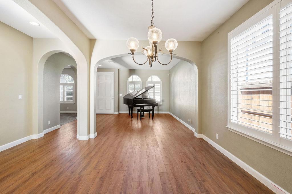 This immaculate 3-bedroom, 2-bathroom home in the desirable Greenhills gated community offers 2,269 sq ft of move-in-ready living space. Built in 2006, the home features a formal living and dining area leading into a spacious great room with a stone fireplace. The open kitchen boasts granite countertops, a center island, a gas range, and a microwave. Luxury wood vinyl flooring and plantation shutters enhance the home's elegance. Step outside to a private backyard with stamped concrete, cement walkways, and a stunning gazebo - ideal for entertaining. Residents enjoy access to community amenities, including a pool, clubhouse, and more. With a 3-car garage and central A/C, this home combines comfort and style in a sought-after location. Don't miss out on this exceptional opportunity!