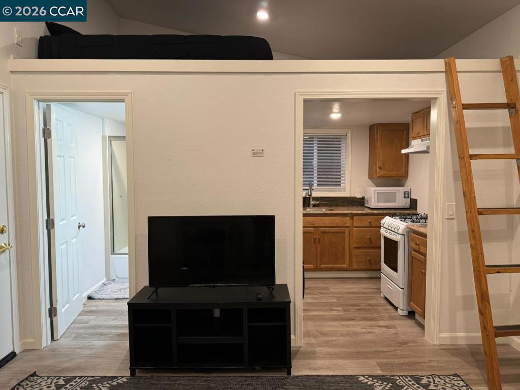 Private Oakland hills hideaway behind mid-century home. Beautiffuly appointed detached ADU with private entry. Rent includes all utilities. Washer/dryer in unit . Small dog considered with additional pet deposit. Easy access to highway 13 AND i-580, bart , downtown Oakland or SF or East Bay commutes. Nearby recreation includes regional parks, Oakland Zoo and Lake Chabot Golf Course. The loft sleeping area makes this feel more like a one bedroom apartment than a studio. Kitchen has gas range, fridge, microwave and laundry. Yard is landscaped with Peach tree and serene garden. Furnishing in photos may be available to rent - negotiable. Available March 1. Apply with RentSpree https://apply.link/ksTy5q0
