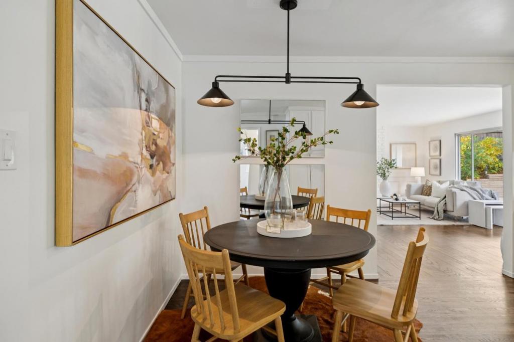 Stunning curb appeal in the Burlingame Hills sets the tone for this beautifully appointed home. Lush landscaping and an inviting entry lead to a light-filled foyer with gleaming hardwood floors. The formal dining room and stylish living room showcase refined elegance, featuring a floor-to-ceiling gas fireplace, expansive windows, and fresh designer paint. Down the central hallway, three generous bedrooms are served by a spacious full bath with colorful tile and a double vanity. The 4th bedroom, the private primary suite, is tucked away at the rear of the home offering a spa-like bath with soaking tub, walk-in shower, and a dedicated closet area. The updated kitchen boasts stainless steel appliances, a chefs eight-burner range, shaker cabinetry, farmhouse sink, and stylish counters with a casual eating area. It opens seamlessly to a spacious family room with its own fireplace and glass doors leading to a spectacular backyard.The outdoor space is truly exceptional, designed for both relaxation and entertaining, with custom brickwork, exposed aggregate, and a freeform pool in a serene natural setting. An enchanting street, two-car garage, and close proximity to Highway 280, SFO, Silicon Valley, top schools, and Burlingame Avenue complete this exceptional Peninsula offering.