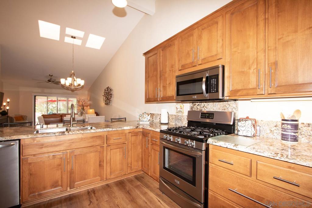 Located in popular Oaks North Villas, this 2-bedroom, 2 bath home is highly upgraded and nestled in a park-like setting. Upgrades include dual pane doors and windows, luxury wide planked vinyl flooring and plantation shutters throughout, granite countertops, Quaker style cabinets, stainless steel appliances, and gas cooking. Direct access to the garage from the laundry room with full sized washer and dryer right off the kitchen. Enjoy the large front, gated, patio perfect for entertaining or the private back patio located off the living room and primary bedroom. No stairs and no condos located above you or below you, makes this the perfect home for retirement or thinking about retirement. Oaks North is a community for people 55 years with many amenities for seniors!