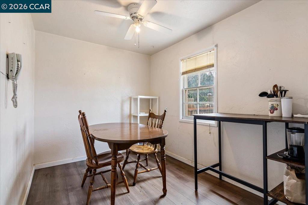 This home offers a great opportunity to add value and make it your own. Originally a 2-bedroom, 1-bath home with a garage, it has been converted to a 3-bedroom layout, adding approximately 270 sq ft for a total estimated living space of 1,117 sq ft. The exterior was updated with stucco a few years ago, and a new roof was installed this year, providing a solid starting point for future improvements. The property backs to the Pittsburg High School ball field and features a tall cement wall for privacy. Ideal for buyers looking for potential, customization, and a chance to create a home that fits their vision.