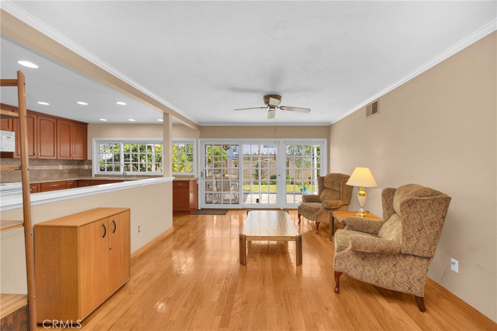 For the first time in 54 years, this cherished Cerritos home opens its doors to a new chapter. Lovingly cared for by the same family for more than five decades, this residence has been the backdrop for holidays, milestones, and everyday moments that quietly turn into lifelong memories. Now, it’s ready to welcome a new family to continue the story. With 6 bedrooms, 3 bathrooms, 2,688 square feet of living space, and a 5,904 lot, this home offers the space, flexibility, and comfort today’s families are searching for especially those needing a primary bedroom on the main level, ideal for multi-generational living, aging parents, or simply the ease of downstairs living. As you step inside, you’re greeted by vaulted ceilings and a light-filled formal living room anchored by a fireplace, setting the tone for warmth and elegance. The home flows effortlessly into a spacious family room open to the kitchen, allowing you to cook, gather, and stay connected all while enjoying views of the manicured backyard through sliding glass doors. A built-in bar area adds a perfect touch for entertaining and hosting memorable evenings. The kitchen is generous in both function and design, featuring ample cabinetry, granite countertops, and enough space for a casual everyday dining area, while a nearby formal dining room offers an ideal setting for special occasions and celebrations. Downstairs, the layout includes a main en-suite bedroom along with two additional bedrooms, providing flexibility for guests, family members, or home office needs. Upstairs, you’ll find three more well-sized bedrooms filled with natural light, plus a beautiful loft with high ceilings and built-in shelving, perfect for a home office, library, or creative retreat. Additional highlights include central air conditioning and heating, an attached two-car garage with direct access, and thoughtful spaces throughout that reflect years of care and pride of ownership. Located in the heart of Cerritos, this home sits in a well-planned, highly desirable community known for excellent schools, beautiful parks, and outstanding amenities. From the renowned Cerritos Library and Cerritos Center for the Performing Arts to the Los Cerritos Center Mall, shopping, dining, and everyday conveniences are all close by—along with everything that makes Cerritos such a special place to call home. This is more than a house it’s a legacy home, ready for its next chapter.