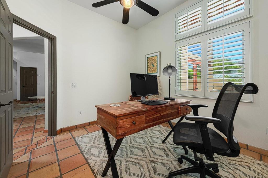 Available for March and April 2026 and long term! This charming 3-bedroom home plus den is ideally located within walking distance to Old Town La Quinta. Enjoy a bright, open layout, a fully equipped kitchen, central A/C, and a shaded patio perfect for relaxing outdoors. The den offers a great space for remote work or additional guests, while the quiet neighborhood and private driveway add to the home's appeal. Just steps from boutique shops, restaurants, cafes, and local events, and minutes from golf, hiking, and resort amenities, this home offers the perfect blend of comfort, convenience, and desert lifestyle.