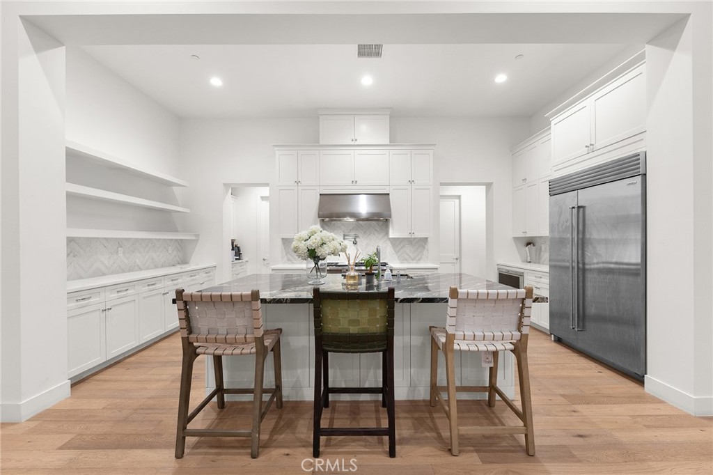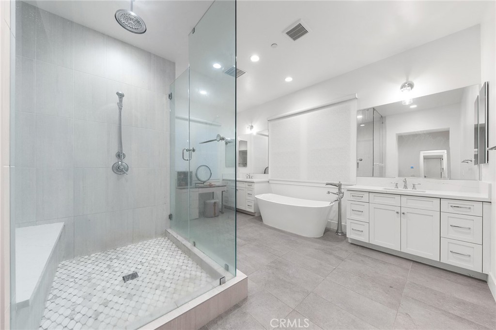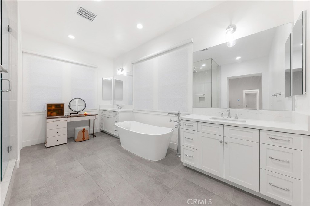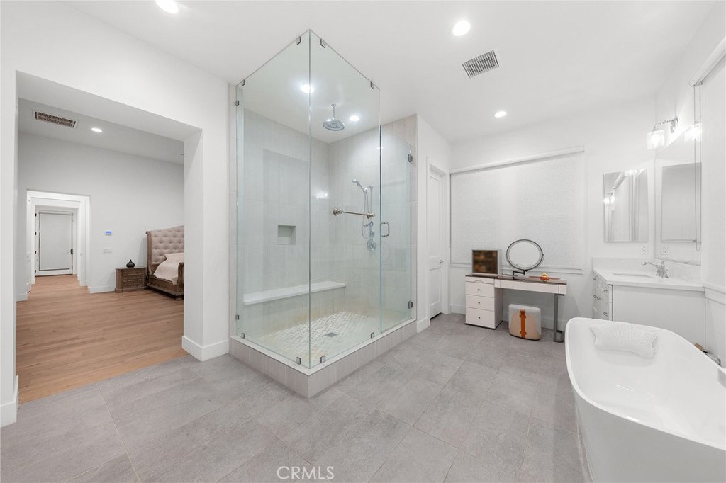 This extraordinary Mediterranean-inspired 4-bedroom, 6-bathroom estate is a statement of refined luxury, architectural elegance, and elevated living. Situated within an exclusive gated hillside community, the residence offers exceptional privacy, scale, and timeless design crafted for the most discerning buyer. Upon entry, a dramatic 16-foot soaring ceiling in the grand living room creates an immediate sense of arrival. The expansive open space is filled with natural light and enhanced by wide-plank hardwood flooring, custom full-height drapery, recessed lighting, and a sleek fireplace—perfectly balancing warmth and sophistication. The open layout is thoughtfully designed for both grand-scale entertaining and effortless everyday living. The gourmet kitchen is a true showpiece, featuring a full suite of Wolf professional-grade appliances, a Sub-Zero refrigerator, custom cabinetry, stone countertops, and an oversized center island. Thoughtfully designed for both elegance and functionality, the home is equipped with both a Western-style main kitchen and a separate Chinese (spice) kitchen, offering exceptional versatility while maintaining the refined aesthetic of the main living areas. The luxurious primary suite serves as a private sanctuary, distinguished by an impressive 14-foot-high ceiling, generous proportions, and refined finishes. The spa-inspired primary bathroom evokes a five-star retreat with dual vanities, a freestanding soaking tub, a walk-in shower, and sophisticated modern details. Each of the additional bedrooms is generously sized and paired with its own well-appointed bathroom, offering comfort, privacy, and convenience for family members and guests alike. Additional highlights include designer lighting, abundant storage, and meticulous attention to detail throughout the home. Set within a serene gated hillside setting with convenient access to shopping, dining, and major thoroughfares, this exceptional 4-bedroom, 6-bathroom residence offers a rare opportunity to experience elevated luxury living at its finest.