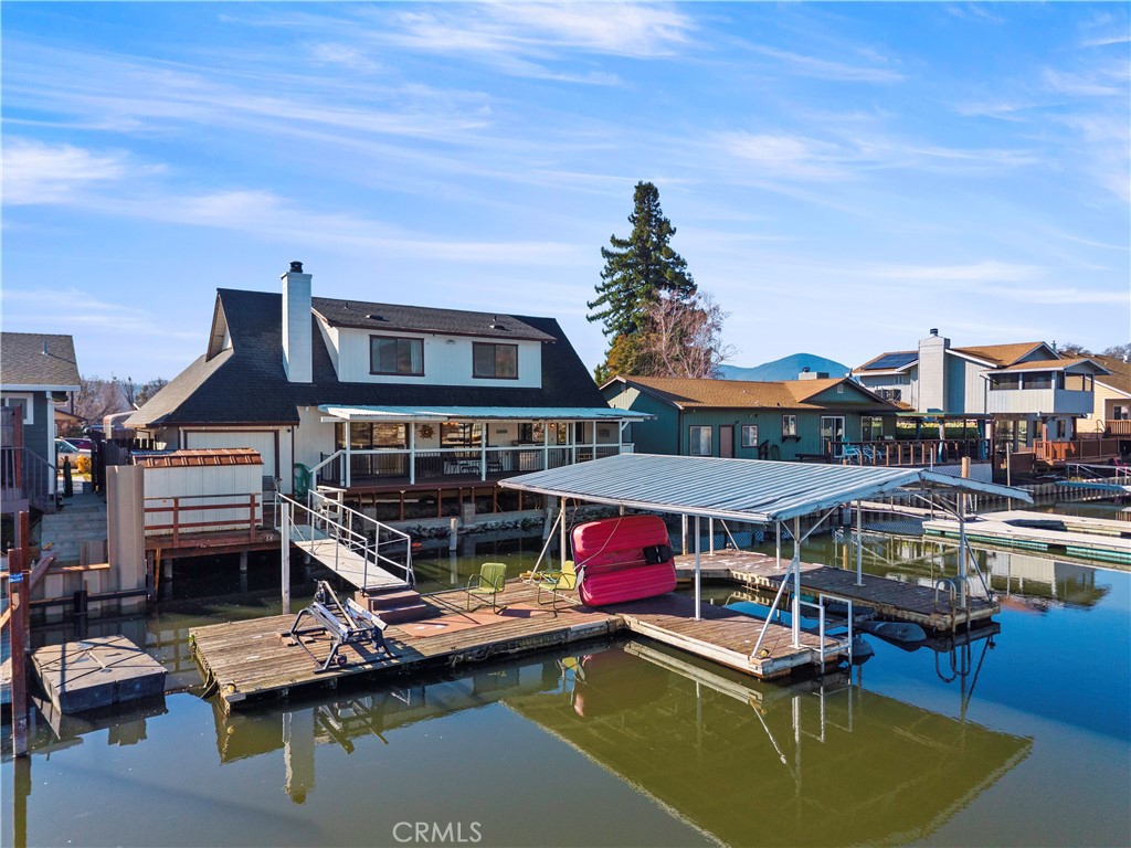 Turn-Key Waterfront Living in the Clearlake Keys. Welcome to this beautifully updated 3-bedroom, 3-bath, two-story waterfront home offering the perfect blend of comfort, recreation, and relaxed lake living. Situated on a wide channel with quick access to Clear Lake, this property is a dream for boating and water enthusiasts. Step through the front door into a plush, carpeted living room featuring a cozy wood-burning fireplace—the perfect place to unwind after a day on the water. A sliding glass door leads to the covered, durable back deck, ideal for year-round entertaining, summer BBQs, and gathering with family and friends while enjoying peaceful waterfront views. A convenient foot ramp provides easy access down to your private dock. The covered boat dock with hydro-lift makes launching and storing your boat a breeze, and there’s plenty of room to moor additional watercraft and aquatic toys—a rare and valuable feature for lakefront properties. Inside, the updated kitchen shines with granite countertops, cherry-stained cabinetry, tile flooring, and a full suite of appliances including electric range/oven, dishwasher, garbage disposal, and microwave. A pantry and space for a small dining table make it both stylish and functional. The flexible floor plan includes a spacious bedroom on the main level located next to a full bathroom with tub and shower, perfect for guests or multi-generational living. Upstairs, you’ll find two additional bedrooms, including a primary suite with a newly remodeled bathroom featuring granite vanity counters, tile flooring, and a tub/shower combination. At the back of the master bedroom walk-in closet is a secret door that provides access to a large bonus room. Additional highlights include: Dual pane windows, Updated interior finishes, Electric central heating and air conditioning, Waterfront channel location with lake access As a Clearlake Keys property owner, you have the option to join the Clearlake Keys Club, which offers a clubhouse, swimming pool, and storage facilities for boats, trailers, and RVs. The home is part of a Property Owners Association with a low mandatory fee of $144 per year, helping maintain the channels that make this waterfront lifestyle possible. Whether you’re looking for a full-time residence, vacation getaway, or investment in lake life, this move-in ready waterfront home with private dock checks all the boxes.