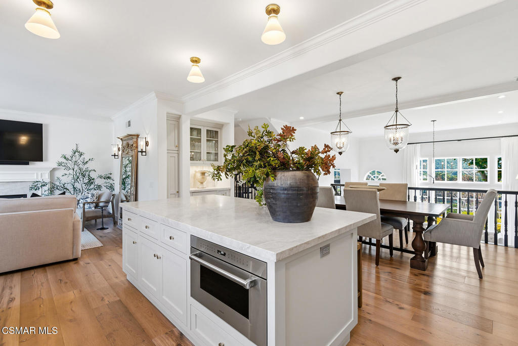 Jaw-dropping panoramic views of Lake Sherwood, the Santa Monica Mountains, and Sherwood Country Club set the stage for this rare end-location townhome--an extraordinary residence remodeled to perfection with a one-of-a-kind renovation that is truly second to none.Set behind the guard gates of Sherwood Country Club, this beautifully reimagined home showcases a modern, wide-open layout designed for effortless living and entertaining.Completely updated with high-end finishes throughout, the residence features a newly designed kitchen with large center island, seamlessly opened to the family room and dining area. Highlights include stunning hardwood floors throughout, all-new cabinetry with expanded storage, new lighting and fixtures, beautifully remodeled marble bathrooms, and a custom built-in wine refrigerator.The flexible floor plan offers 3 bedrooms, an office/library with bar, and 2 additional flex rooms--ideal for a gym, guest suite, office, or game room. The spacious primary suite is a true showpiece with sitting room retreat, private balcony, spa-like bath, and spectacular views.Complete with a three-car garage, ample storage, and a separate storage room, this is Sherwood living at its finest--with access to two clubs offering optional memberships and extraordinary amenities including two Jack Nicklaus-designed golf courses, tennis, pickleball, swimming, and private Lake Sherwood access for boating, paddle boarding, kayaking, fishing, and more.Stunning. Rare. Unforgettable.