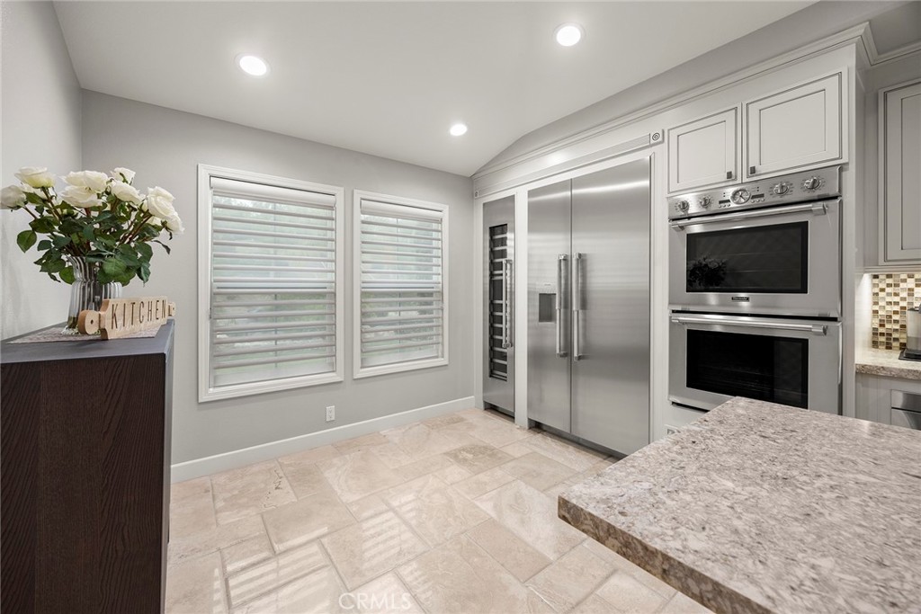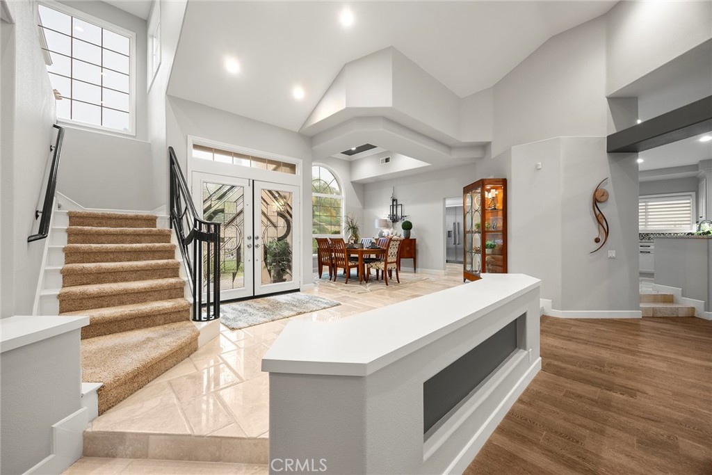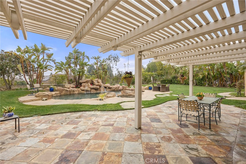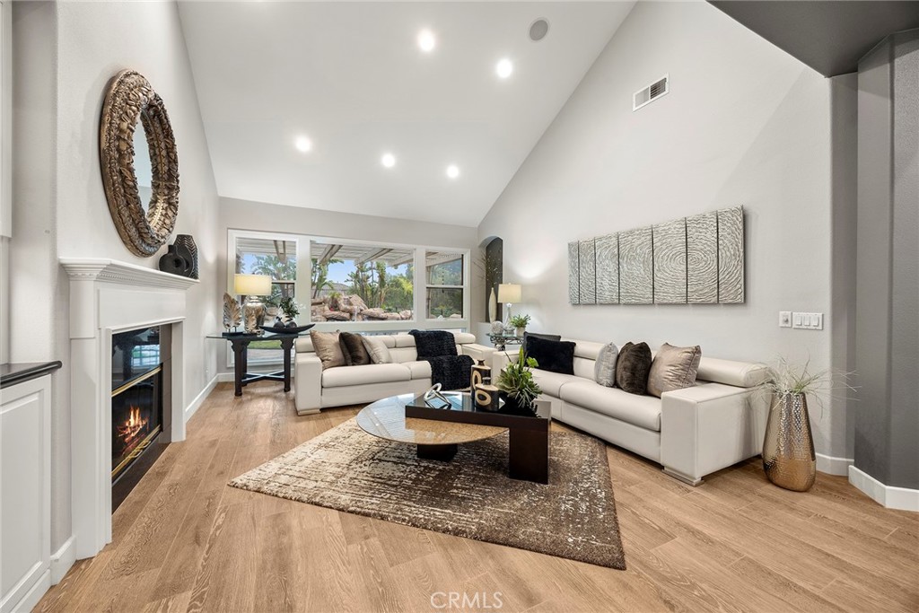 $75,000 PRICE REDUCTION~~EXCEPTIONAL, this timeless contemporized residence is offering a rare blend of a primarily SINGLE-LEVEL living experience with a private upstairs retreat. This Toll Brothers home showcases impeccable craftsmanship, refined upgrades, & resort-style amenities in one of Yorba Linda’s most desirable neighborhoods. From the moment you arrive, the home’s spectacular curb appeal & exquisitely designed front landscaping waterfall, create an impressive first impression. Elegant leaded glass double entry doors open to a grand interior with soaring 2-story vaulted ceilings, open floor plan, & sense of scale that feels both expansive & inviting. Porcelain wood plank flooring flows beautifully through the living room, family room, halls, & laundry room, adding warmth, durability, & timeless appeal. The open living room is filled w/natural light from large, picturesque windows & oversized skylights, showcasing the home’s outstanding architectural details, with wide-open Stunning Views of the Rock Pool & Waterfall, letting the outdoors in. This is a sophisticated focal point. The double-sided fireplace seamlessly connects the living room & family room—ideal for both everyday living & entertaining. The remodeled kitchen is a chef’s delight, featuring Cream Custom Cabinetry, quartz countertops, quartz island, high end Thermador appliances, including a floor to ceiling built-in wine refrigerator & views of the stunning backyard. Nearby, the formal dining room offers picturesque views of the beautifully landscaped grounds. A highly sought-after feature, the MAIN LEVEL PRIMARY BEDROOM suite delivering a true single-level living experience. The spacious suite includes a private retreat area & a remodeled primary spa bathroom with dual vanities, make-up vanity, a Jetted tub w/LED Lighting, & a walk-in closet. Completing the main level is an additional bedroom, or study with its own bathroom—perfect for guests and the laundry room. Upstairs, private teen or guest wing provides excellent separation & functionality, featuring a loft, two additional bedrooms, & a full bathroom. The immaculate backyard is an entertainer’s dream, thoughtfully designed with a pool & spa, built-in BBQ area, & a lush grassy space ideal for gatherings or quiet relaxation. Additional highlights include a 4-car garage & located within the YL High School district. A rare opportunity to own a home that seamlessly blends timeless elegance, luxury finishes, & coveted single-level feel.