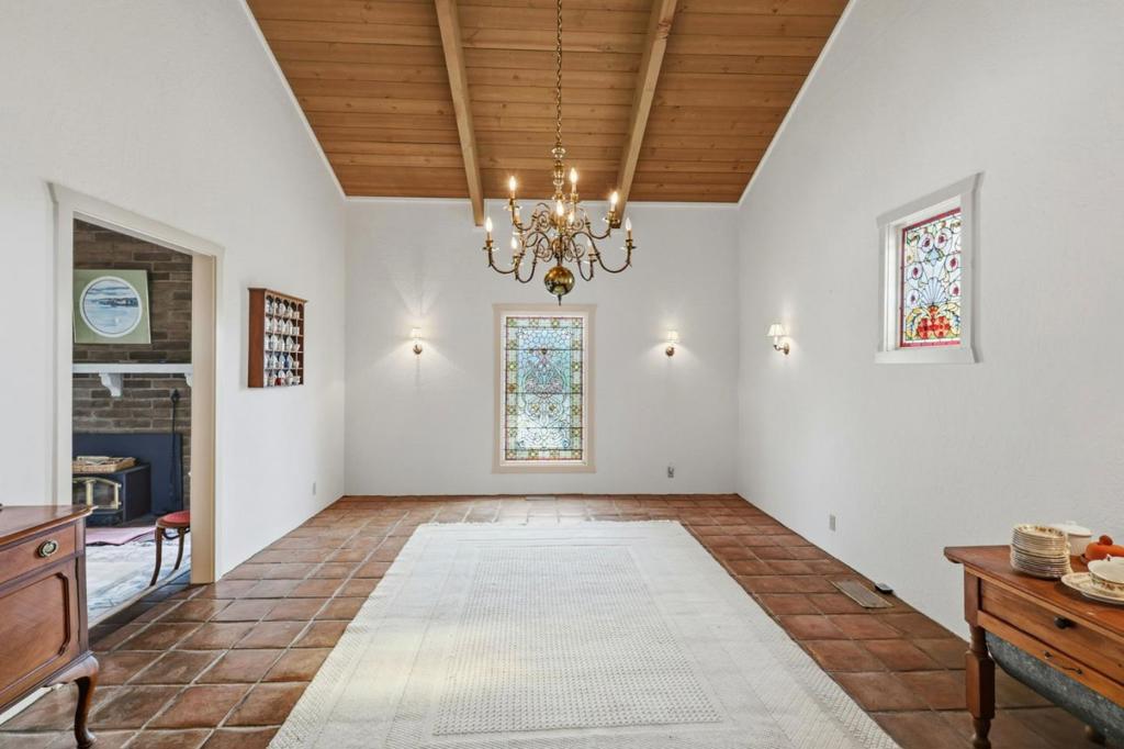 A truly one of a kind Bonny Doon property with rare architectural character and exceptional potential. Originally built by an antiques dealer, this custom single level home is filled with authentic period details including rich walnut paneling, hand crafted trim, antique stained glass, and repurposed vintage elevator doors from England. Spacious 3000 square feet on one level with a thoughtful floor plan, oversized bedrooms, and a gorgeous formal dining room with 2 stained glass windows. Set on a flat, sunny parcel at the end of the road in a great neighborhood. The property offers a two car garage, abundant parking, easy driveway access, and a peaceful setting with excellent usability of the land. The home offers a rare opportunity for renovation and modernization while preserving its unique character and architectural charm. Ideal for buyers seeking space, charm, sunshine, and a peaceful Bonny Doon setting with exceptional upside