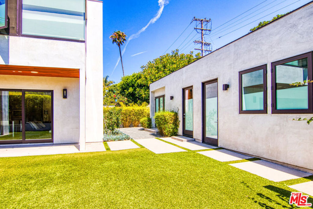 Located in Santa Monica's coveted Sunset Park neighborhood, this newer two-story modern residence is set on an expansive 8,112 square foot lot and offers exceptional space, thoughtful design, and versatility. The main home features four bedrooms and 4.5 bathrooms, complemented by a detached guest house with its own full kitchen and bath ideal for guests, extended family, or a private office. Expansive interiors are highlighted by soaring ceilings, clean architectural lines, large picture windows, dual HVAC systems, and a sleek fireplace. The chef's kitchen is outfitted with custom cabinetry, generous prep space, a center island, and premium stainless steel Miele appliances. Designed for seamless indoor-outdoor living, the home opens to thoughtfully landscaped front and rear yards with low-drought finishes and sliding glass doors, while a dramatic spiral staircase leads to a rooftop deck. A semi-private alley provides light, privacy, and direct access to a detached 3 car garage. Located within the Grant Elementary School district and just minutes from Trader Joe's, local dining, parks, Santa Monica College, and the beach.