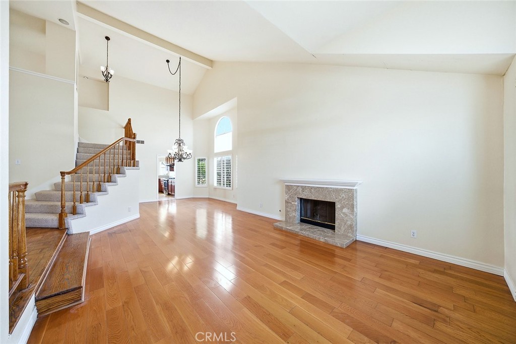Spectacular 4-bedroom, 2.75-bath, 2,572 sq ft home on a quiet cul-de-sac in Via Verde’s gated Regency Hills community, featuring sunset, city light, and mountain views. The expansive floor plan includes a first-floor bedroom, multiple living and dining areas, large windows throughout, and direct access to the backyard. The light-filled interior features soaring ceilings and a flowing layout designed for everyday living and entertaining. The kitchen includes granite countertops, stainless steel appliances, and a walk-in pantry, opening to adjacent living and dining spaces with scenic hillside views. The living room and family room each feature a fireplace, adding warmth and definition to the main living spaces. Upstairs, the primary suite is generously sized and includes a spa-style bath, walk-in closet, and private balcony with city light views. Two additional upstairs bedrooms provide versatile space for larger families, guests, or a home office. The private backyard features a resistance pool, ideal for exercise or relaxation while enjoying sunset views and surrounding hillsides. Mature landscaping, palm trees, and a wide driveway complement the outdoor setting. Additional features include indoor laundry and a 3-car garage providing ample parking and storage. Located in the heart of Via Verde, this home offers privacy, scenic surroundings, and proximity to parks, golf, and schools. Whether you’re upsizing, relocating, or simply seeking a home that feels like a true retreat, this property is a rare find.