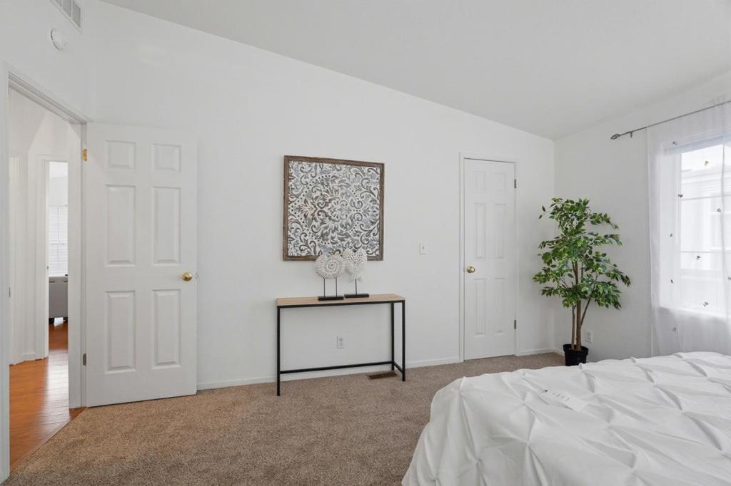 This beautifully maintained 3-bedroom, 2-bath home in the desirable Casa De Amigos community is move-in-ready. In a city where housing prices regularly soar well into the millions, this home offers a rare affordable opportunity to live in Sunnyvale without sacrificing space, comfort, or convenience. Inside, you'll find an open floor plan, new carpet, fresh paint, and a bright living room with a wood-burning fireplace perfect for relaxing after a long day. The large kitchen features a center island, ample cabinetry, a breakfast nook, and a new dishwasher. The in-unit laundry room includes a washer, dryer, extra storage. The primary suite offers a spacious closet, oversized jet tub, dual vanities, and walk-in shower. A 2nd bedroom with walk-in closet is near the full guest bath. The 3rd bedroom is perfect as an office or guest room. Enjoy a charming front porch, low-maintenance yard, custom storage shed, and a covered carport. Casa De Amigos offers a pool, clubhouse, gym, and wide streets with ample guest parking. Conveniently located near HWY 101, 237, 85, VTA Light Rail, Levi's Stadium, major tech employers, shopping and dining. With low space rent and far more affordability than traditional Sunnyvale housing, this home offers exceptional value in a prime Silicon Valley location.