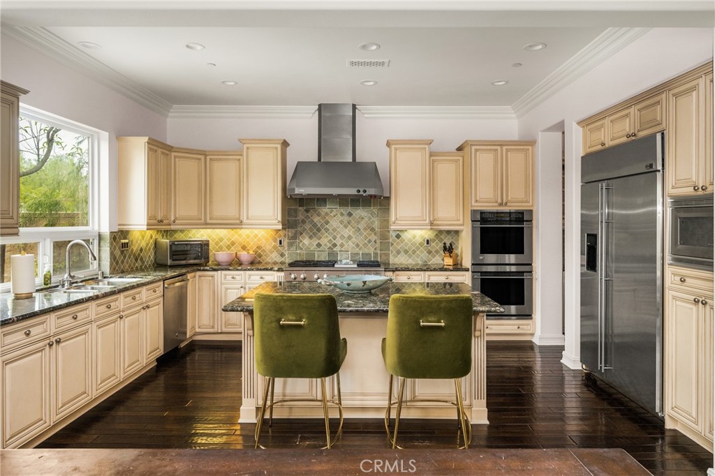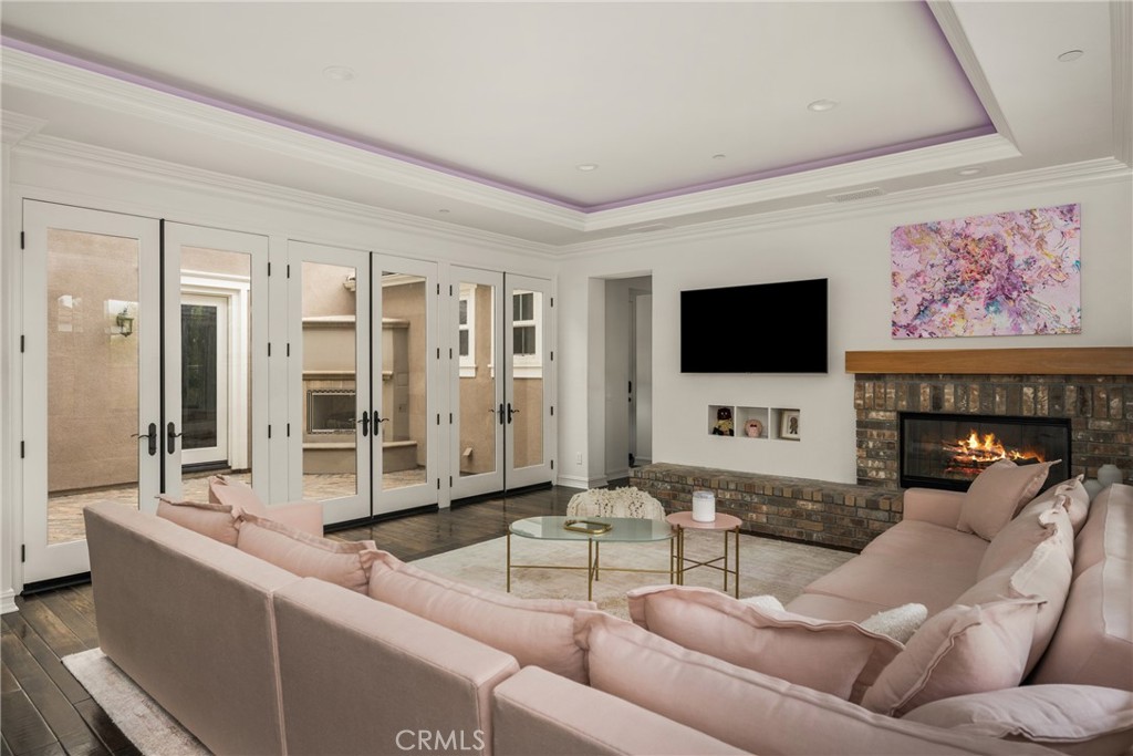 At the top of a quiet cul-de-sac in Kerrigan Ranch, where mornings begin with hillside views and evenings end in calm, this rare Model 3X home tells the story of Yorba Linda living at its best—private, elevated, and designed for both everyday comfort and unforgettable gatherings. The flag lot setting provides a private approach to the home, setting the tone for the sense of space and separation that defines this property. Inside, nearly 5,000 square feet unfolds with intention. The kitchen is the natural gathering place—anchored by an expansive island where mornings start with coffee and weekends stretch into long conversations. Granite countertops, stainless steel appliances, French cabinetry, and generous seating flow effortlessly into the family room, creating a space where hosting feels easy and life feels connected. Just beyond, the extended bonus room—rarely found and stretching the length of the three-car garage—becomes whatever the moment calls for: movie nights, celebrations, or quiet afternoons. With a dedicated bathroom that opens directly to the backyard, pool days transition seamlessly into evenings with friends. At the front of the home, a library option—currently a mirrored gym—offers a private space to recharge, reflect, or refocus. Upstairs, the primary suite is a true retreat. Step onto the balcony and take in rare Catalina Island views—a reminder of how elevated and special this setting truly is. Throughout the home, thoughtful upgrades add warmth and polish: engineered hardwood floors downstairs, crown molding with integrated LED lighting, custom light fixtures and mirrors, and marble and stone finishes in every bathroom. Outside, life slows down. The expansive lot becomes a private resort with a Pebble Tec pool, waterfall, slide, spa, and security fencing—designed for both family fun and elegant entertaining. Fresh exterior paint, artificial turf, and updated pool equipment ensure the focus stays on enjoying the space, not maintaining it. Even the details behind the scenes are elevated, from the LifeSource whole-house water filtration system to the fully customized three-car garage with faux-wood cabinetry, epoxy floors, and a Tesla charger. Located within the award-winning Placentia–Yorba Linda Unified School District, this home is zoned for the highly sought-after Yorba Linda High School, one of the most desired school assignments in the area and a defining part of the Yorba Linda lifestyle.