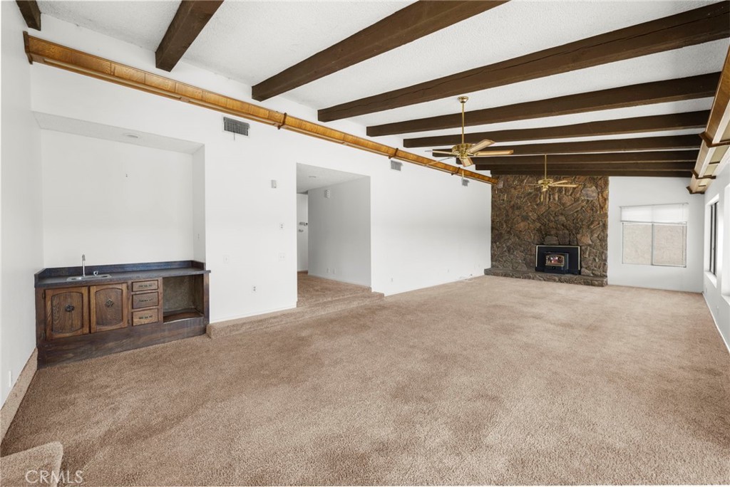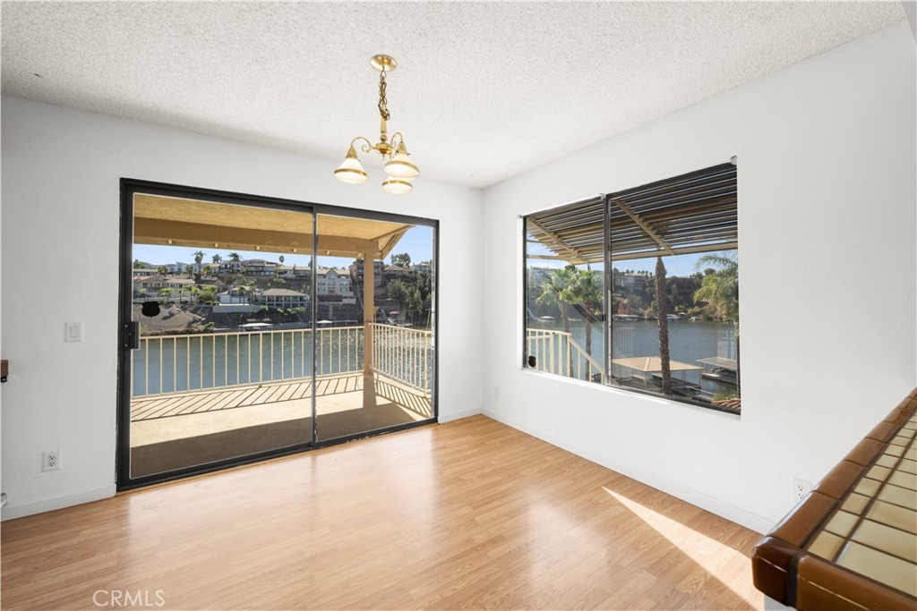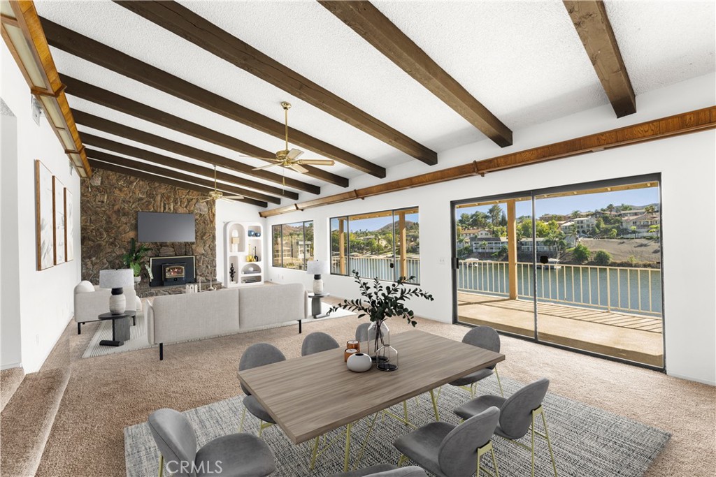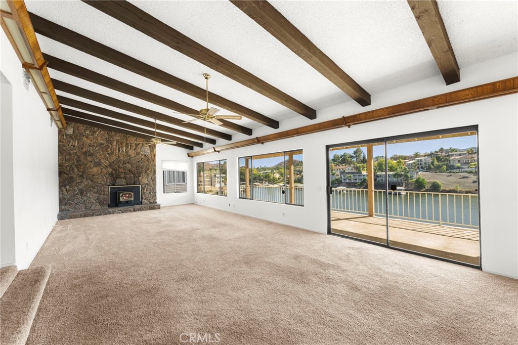 WATERFRONT retreat with limitless potential! The prime location on the East Bay near the tunnel offers unobstructed lake views! The open-concept living area with lake views, soaring vaulted beamed ceilings, and a stone fireplace offer endless possibilities for design. With 2 sliders on main level and tons of windows throughout, the lake views become a central feature of the home, creating a seamless flow between indoor and outdoor spaces. The large covered top deck is ideal for enjoying sunsets, and the lower-level deck offers a more intimate setting to relax and entertain. The large kitchen and dining area await your creative touch to bring them up to modern standards, with plenty of space to expand and upgrade. The primary suite with private bath provides a peaceful retreat, and the additional bedroom and bath on the main level ensure plenty of space for family or guests. The downstairs family room is a highlight, offering plenty of room for entertainment, relaxation, or a home theater, or a third bedroom with easy access to the deck and backyard. Plus, a huge unfinished area downstairs could be converted into more bedrooms, a larger entertaining, or an ADU since it offers a separate entrance out to the side yard. With a private cul-de-sac location, this property offers both privacy and convenience. The generous backyard is the perfect canvas for your dream outdoor space—whether it’s adding a luxurious pool, pickleball court, or a dock for lake access. There's an attached 2-car garage with a sink & toilet and direct access to the home, and an additional small 1-car garage that provides extra storage or could be used as an office/studio since it has an entrance that leads out to the side deck. There's potential to expand the garage to the front or use it for boat or RV parking. Plenty of storage under the bottom deck that could be opened up to create the ultimate indoor/outdoor entertaining area. Canyon Lake is a gated community with a private lake offering boating, swimming, water skiing, wake boarding, fishing, kayaking, & paddleboarding, an 18-hole golf course, lighted tennis-courts, pickleball courts, horse stables, baseball/softball fields, basketball courts, marina, parks, beaches, dog park, pump track, senior center, & a plethora of clubs and activities. Don't miss this rare opportunity to create your dream lakefront property in the perfect location in a picturesque community— the home is ready for your vision and personal style.