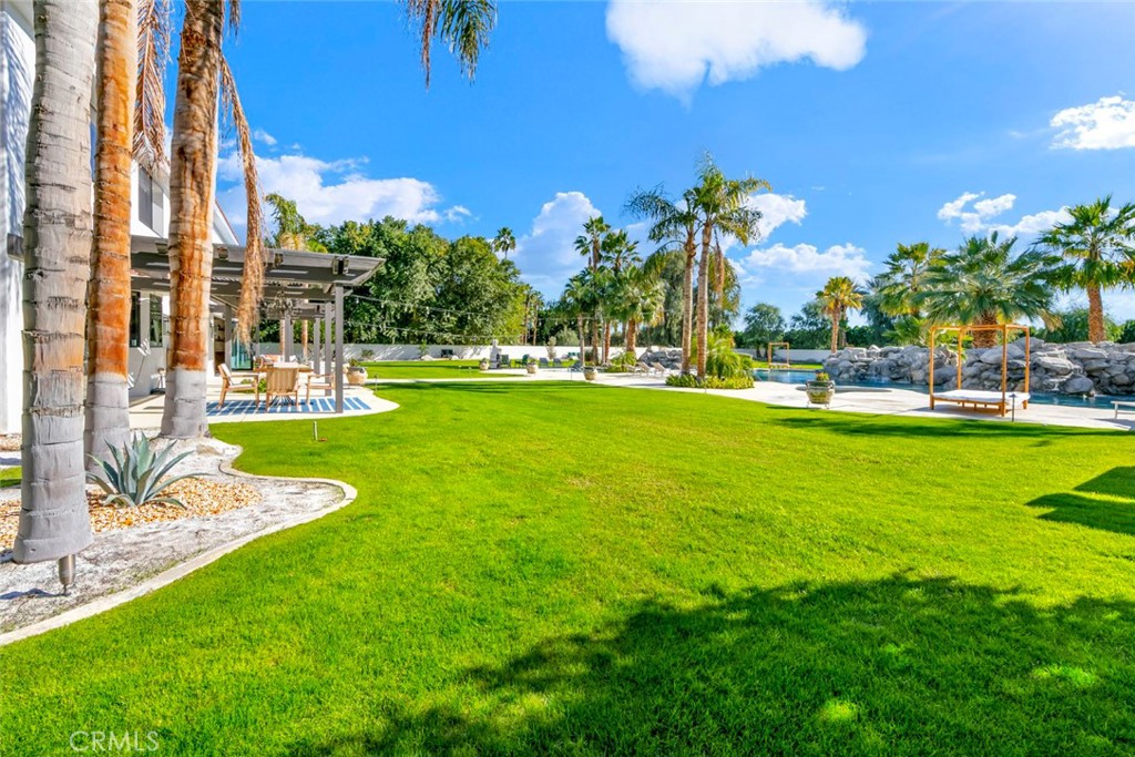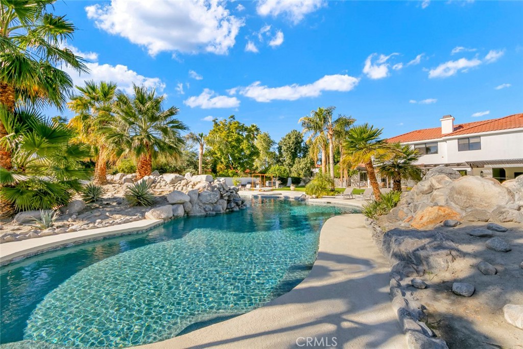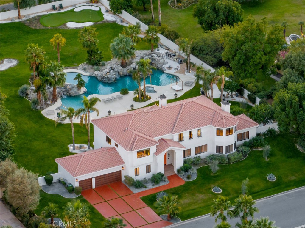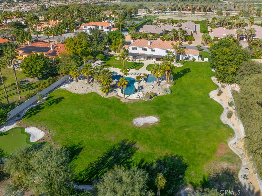 Located behind the gates of The Estates of La Quinta, 81935 Mountain View Lane presents a rare opportunity to own a true resort-caliber estate in one of the desert's most private and sought-after enclaves. Perfectly positioned near the world-class Desert International Horse Park, the Jacqueline Cochran Regional Airport, PGA West, and the exclusive Madison Club, this property offers unmatched access to elite lifestyle amenities while maintaining exceptional privacy within La Quinta. The estate is set on an expansive 1.25 acres, providing exceptional space, privacy, and the scale necessary to support its resort-style amenities and grounds. Designed for both grand-scale entertaining and everyday luxury, the estate showcases one of the Coachella Valley's largest resort-style pools, enhanced by dramatic cascading water features and expansive lounging areas. A private par-3 golf hole with crushed white Augusta-style sand bunkers creates a one-of-a-kind backyard experience rarely found in residential estates, delivering a true country club atmosphere at home.The residence has been thoughtfully remodeled with high-end finishes and architectural details throughout its six bedrooms and six-and-a-half bathrooms. Interiors feature 10-inch wide-plank European oak wood flooring, imported Spanish tile, and Carrera white marble throughout. Custom tile bathrooms, two indoor Jacuzzi tubs, and solid 8-foot alder doors elevate the sense of craftsmanship and quality at every turn. The gourmet kitchen and entertaining spaces are anchored by Wolf and Sub-Zero appliances, three wine refrigerators, a full wet bar, and a dramatic 17-foot Fleetwood-style bi-fold door that seamlessly connects indoor and outdoor living. A six-foot pass-through window further enhances the flow for hosting, while custom cast-iron A/C vents and a whole-house central vacuum system reflect the home's attention to refined detail and modern convenience. 81935 Mountain View Lane is a rare offering that blends privacy, proximity, and resort-level amenities into a single exceptional estate--an ideal retreat for those seeking the highest level of luxury living in La Quinta.